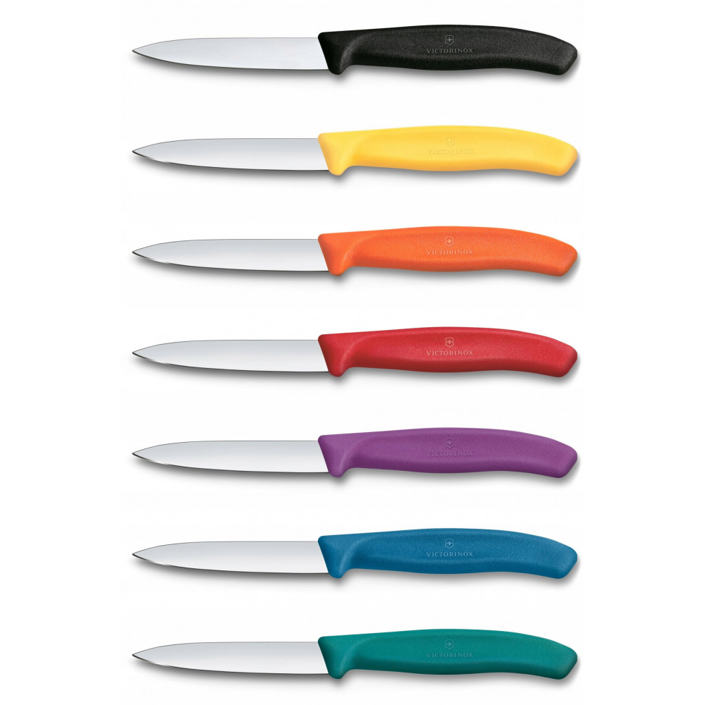 Маленький фиолетовый нож Victorinox Swiss Classic с гладким лезвием 8 см для очистки овощей/фруктов. Компактный, легкий и маневренный инструмент со швейцарской точностью и эргономичным дизайном сделает вас настоящим виртуозом на кухне в подготовительных работах. Использование качественной стали и технологии ее обработки позволяют ножу оставаться на пике остроты долгое время без подзаточки. Острый кончик лезвия станет полезным для измельчения лука, чеснока или же других мелких продуктов. Почистить яблоки, измельчить, вырезать сердцевину у перца, нарезать зелень, а чистить картошку станет вашим любимым занятием :)