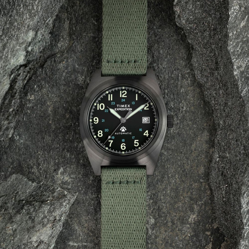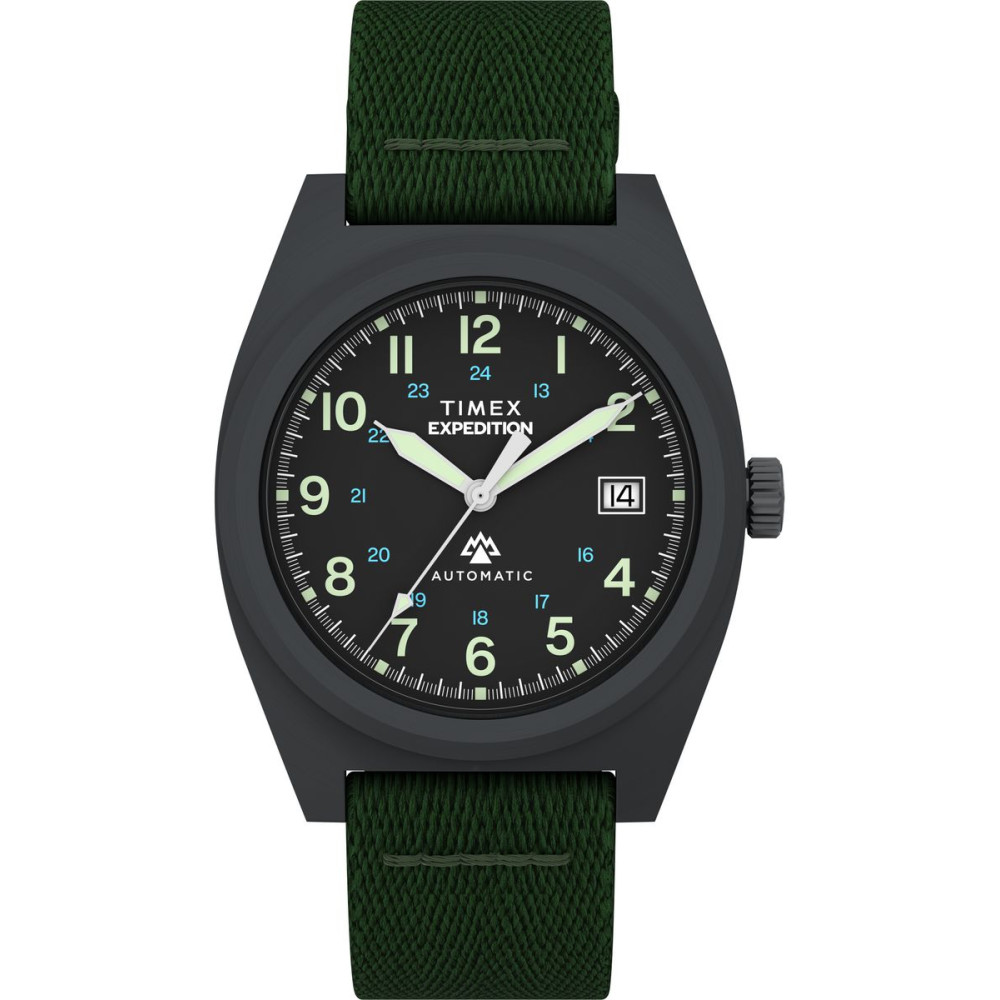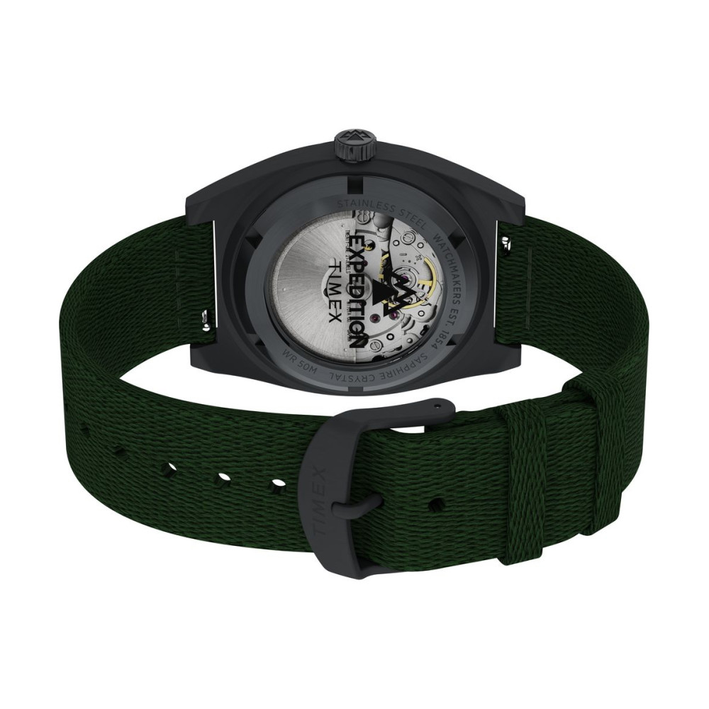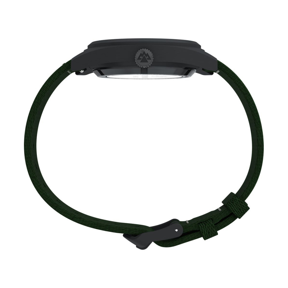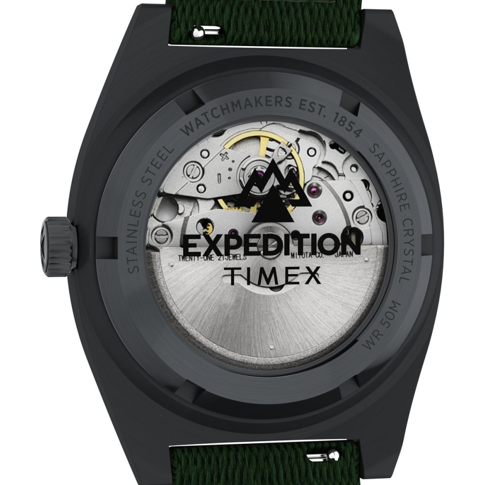 Мужские автоматические часы с черным стальным корпусом 39 мм и зеленым текстильным экоремешком. Модель Expedition Capstone представляет новый дизайн корпуса бочковидной формы из матовой стали. Автоматический механизм с 21 камнем, работающий без батарейки, приводится в движение вашими движениями во время ношения часов. Переверните часы, и вы увидите прозрачное окошко на задней крышке корпуса, позволяющее рассмотреть механизм. В соответствии со стремлением защищать дикие места, которые мы любим исследовать, часы комплектуются ремешком, изготовленным из переработанного пластика и оснащенным быстросъемными пружинными штифтами для легкой замены ремешка без инструментов.