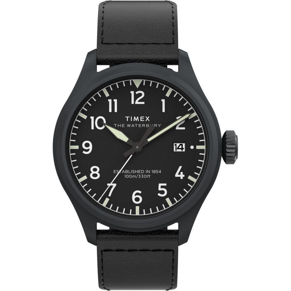 Мужские кварцевые часы Timex WATERBURY Ace 41 мм на черном кожаном ремешке. Waterbury Ace — это усовершенствованное переосмысление традиционных пилотских часов, отличающееся новым корпусом из матовой стали, который выглядит уверенно и изысканно. Его чистый циферблат обеспечивает быструю проверку времени благодаря крупным арабским цифрам, а секундная стрелка также уникальна: гладкая и минималистичная, она лишена фирменной буквы «W» Waterbury, что позволяет военной эстетике часов раскрыться в полной мере. Другие детали включают окошко даты на 3 часа, светящиеся стрелки. Экологичный ремешок из гладкой кожи, полученной от Leather Working Group (LWG), оснащен быстросъемными пружинными штифтами для легкой замены ремешка без использования инструментов.