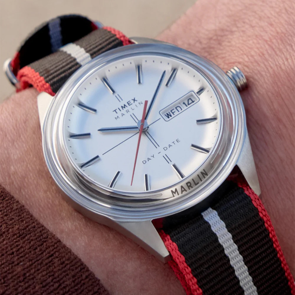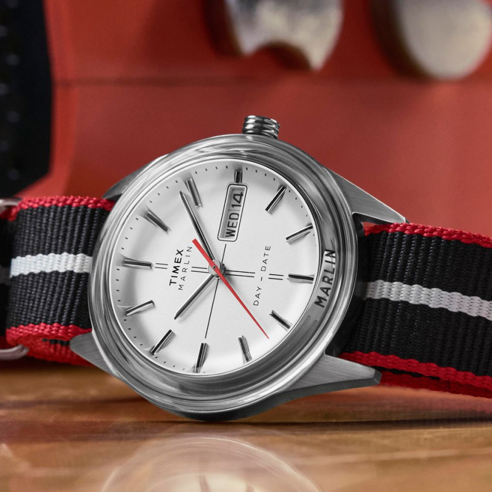 Мужские кварцевые часы Timex MARLIN Jet 38 мм с двойной апертурой и полосатым текстильным ремешком. Воплощают футуристические дизайнерские идеалы 60-х годов сдержанными деталями и элегантным корпусом из матовой стали. Однако их наиболее отличительной чертой является выпуклое стекло, которое покрывает всю верхнюю поверхность корпуса часов, обволакивая безель с названием Marlin и придавая захватывающую глубину ретро-футуристическому виду часов. Оно плавно переходит в плоские боковые стороны корпуса, оставляя открытыми только ушки. Боковые стороны корпуса плавно переходят в привинчивающуюся заднюю крышку, которая повторяет выпуклый контур стекла, подчеркивая обтекаемый профиль часов и космическую эстетику. Матовый вогнутый циферблат демонстрирует узор в виде перекрестий, дополненный окошком даты и дня недели на отметке «3 часа». Timex дополнили эти часы двухслойным ремешком из переработанного пластика, что дает новую жизнь материалам, которые в противном случае оказались бы на свалке.