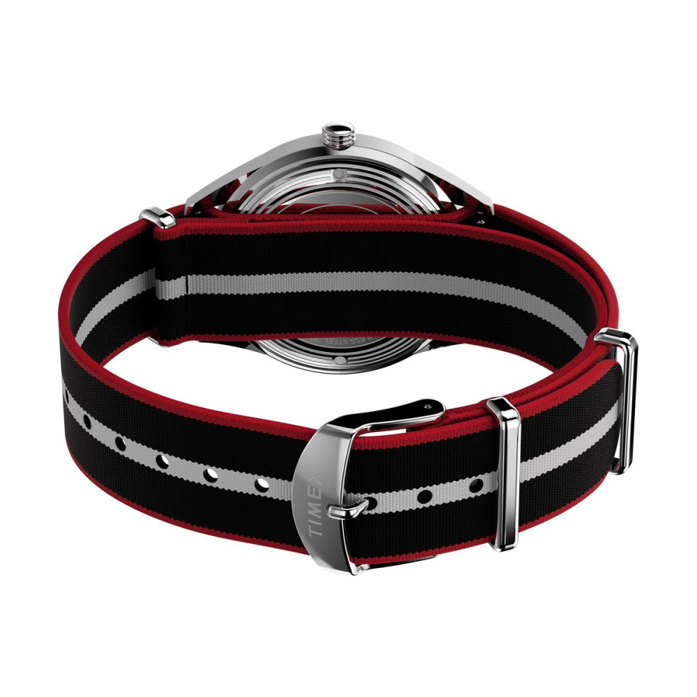 ✔ Черно-красно-белый текстильный ремешок 19 мм из переработанного пластика (застежка – стальная пряжка).