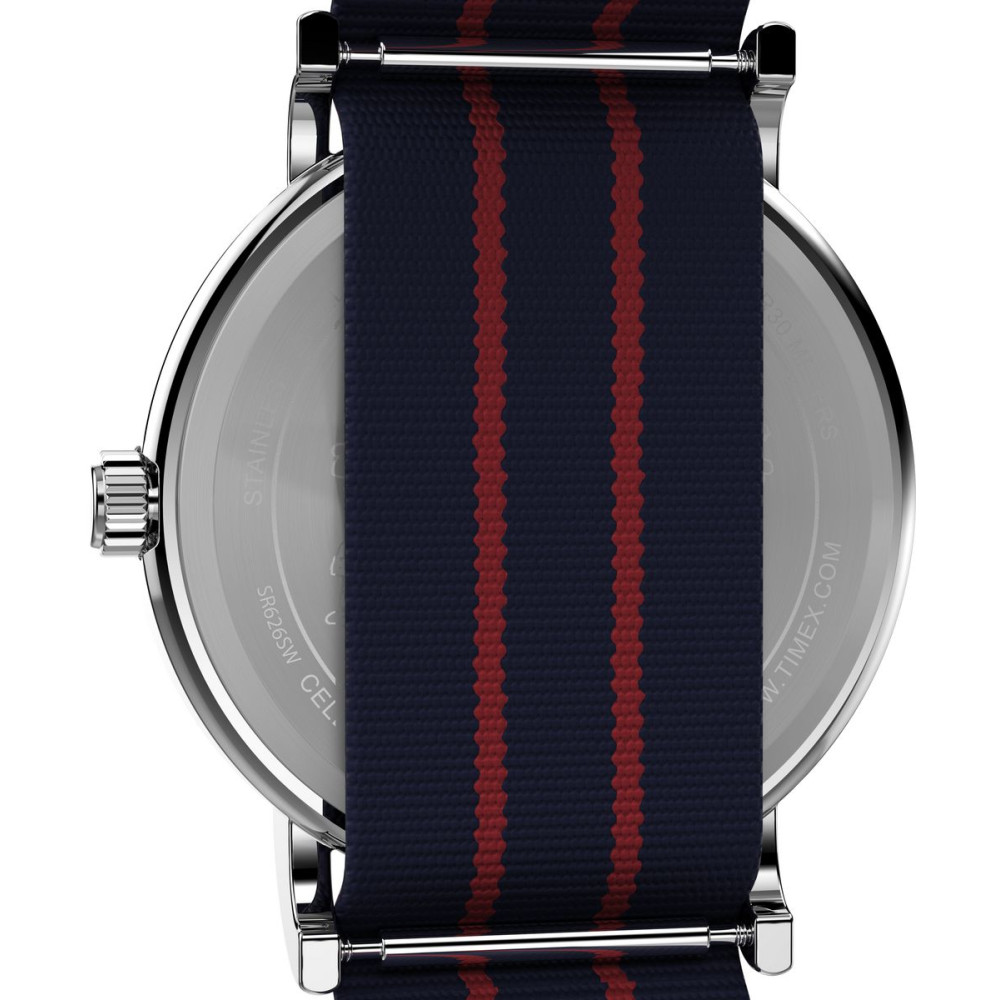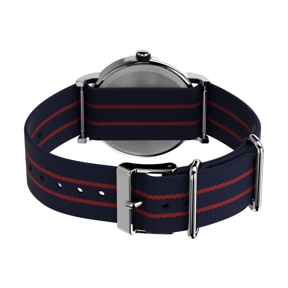 Кварцевые часы-унисекс Timex x Peanuts® Weekender Joe Cool 38 мм со Снупи на циферблате и полосатым текстильным ремешком. Снупи предстает в образе своего альтер эго Joe Cool на чистом белом циферблате часов Weekender. Созданные для поклонников популярного американского комикса Peanuts всех возрастов, эти часы сочетают в себе очаровательный дизайн с элегантным 38-миллиметровым корпусом, ярко-красной секундной стрелкой и полосатым текстильным ремешком в стиле НАТО со скользящим под корпус креплением.
