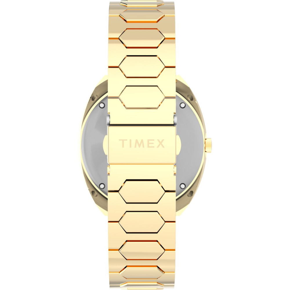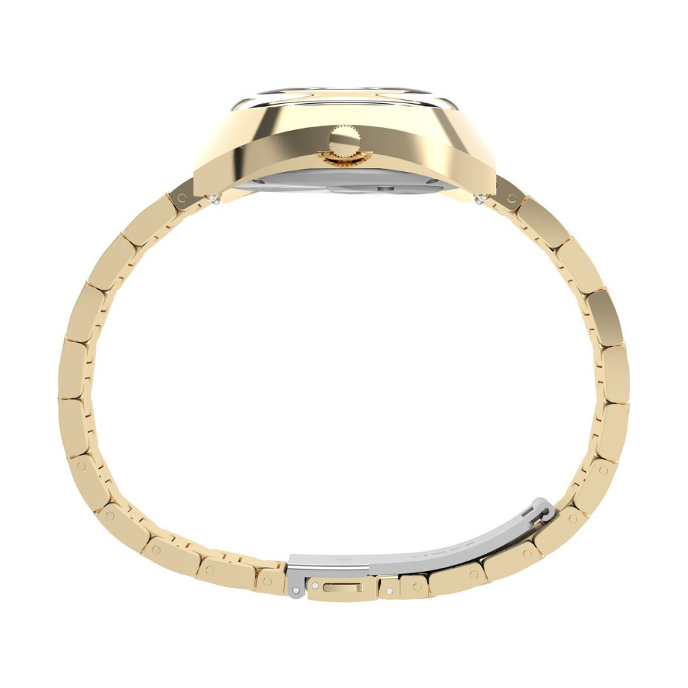 Мужские кварцевые часы Timex Q TIMEX 1972 Time Machine Reissue 39 мм с золотистым стальным браслетом. Эти часы 1972 года, словно привет из прошлого, - это архивные кварцевые часы, которые излучают смелость 70-х со всех сторон. Они могут похвастаться массивным стальным корпусом в форме бочки с полированной отделкой по всему периметру. Особое внимание к деталям: объемные плавающие часовые метки, парящие над эффектным циферблатом "тигровый глаз", а также полированные стрелки в тон, трапециевидное окошко даты и куполообразное акриловое стекло, соответствующее эпохе. Завершает образ смелый геометрический браслет, тщательно изготовленный из полированной стали, который добавляет современный штрих к этому ностальгическому, переизданному дизайну.