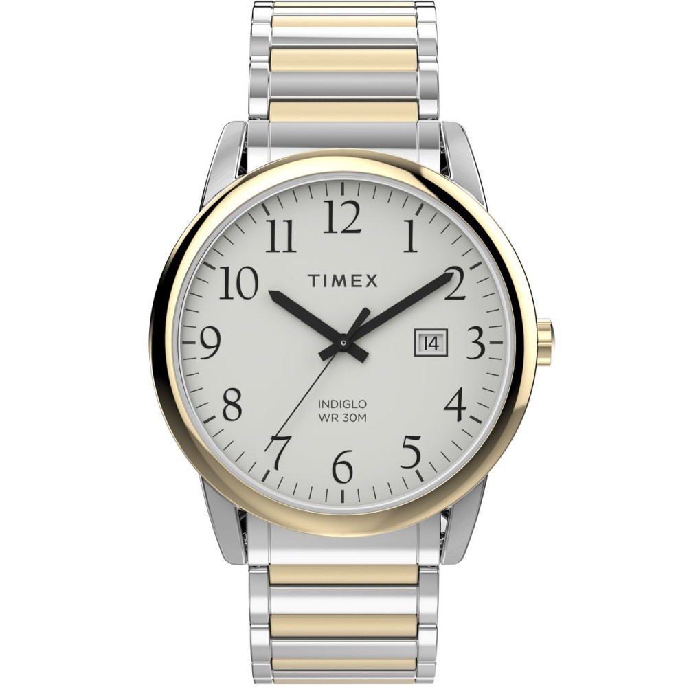 Timex EASY READER Oversized 40мм/мужские/кварцевые/белый циферблат/стальной браслет /30м/Минеральное стекло/Латунный корпус с GP/Браслет - 20мм /BoxJT TW2W52100 (США) Гарантия: 1 год