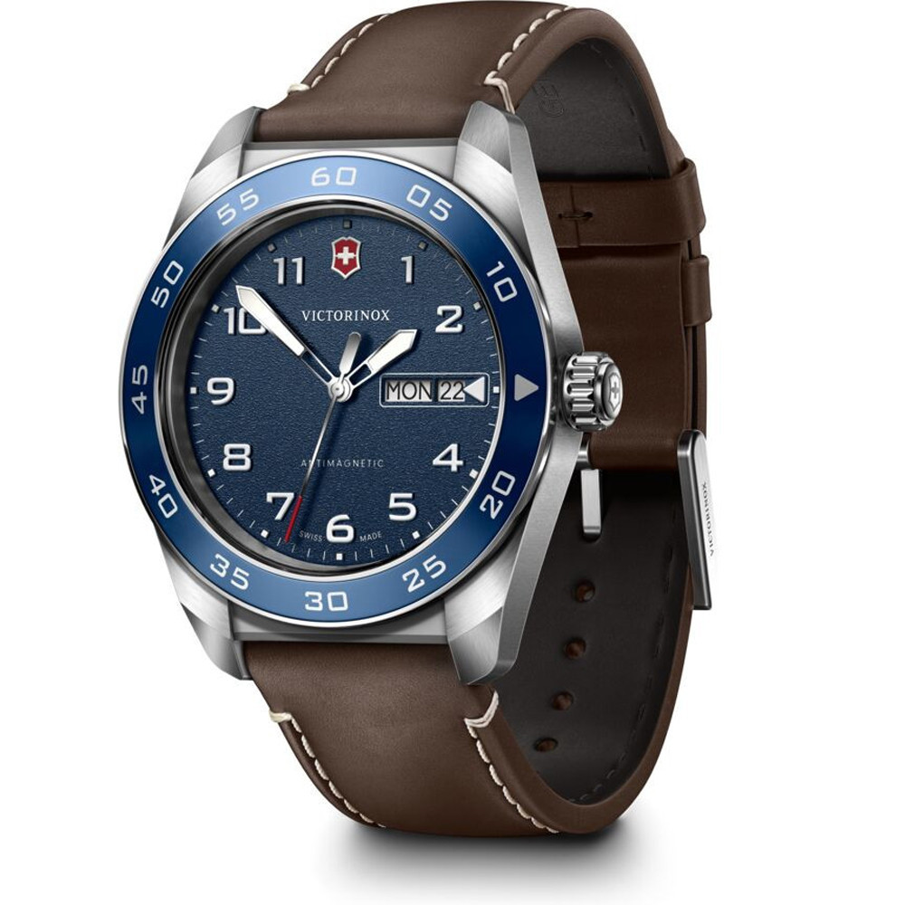 Victorinox Swiss Army SWISS ARMY 42мм/мужские часы/кварцевые/синий циферблат/коричневый кожаный ремешок /100м/Сапфировое антибликовое стекло/Стальной корпус Швейцария 242040 Гарантия: 5 лет