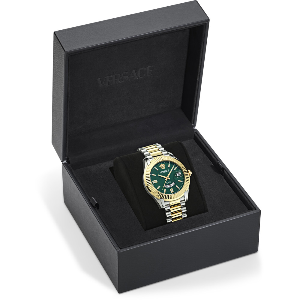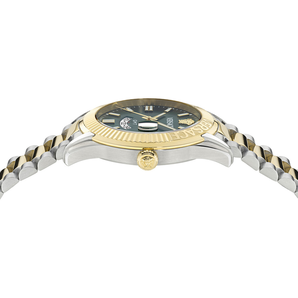 Versace APODIS 41мм/мужские часы/кварцевые/GMT/зеленый циферблат/стальной браслет /50м/Сапфировое антибликовое стекло/Стальной корпус с GP Швейцария VE0U00225 Гарантия: 2 года
