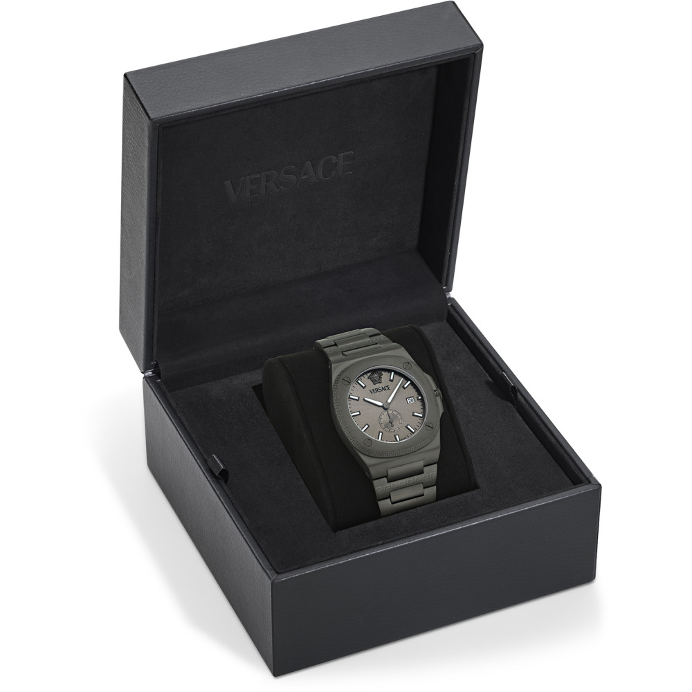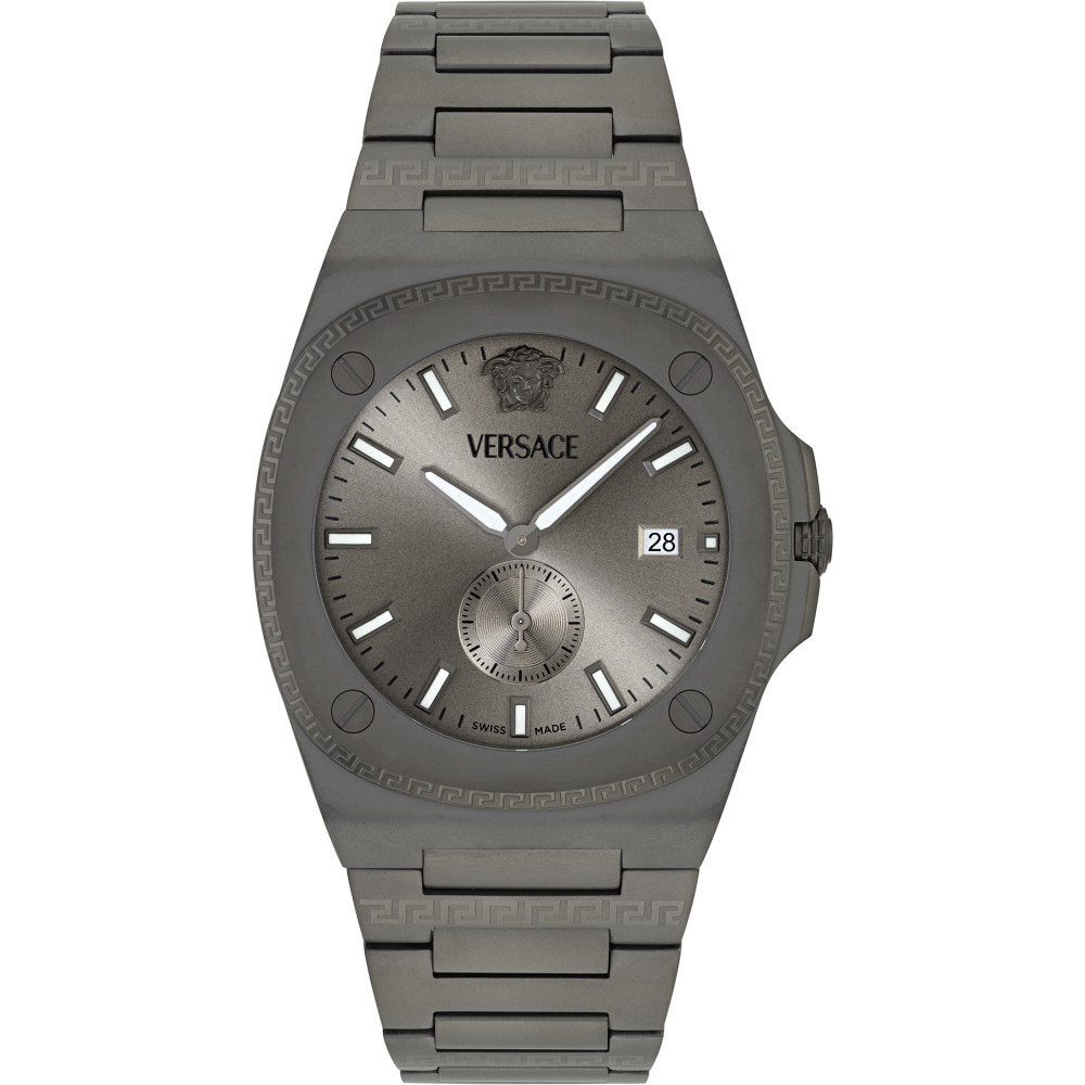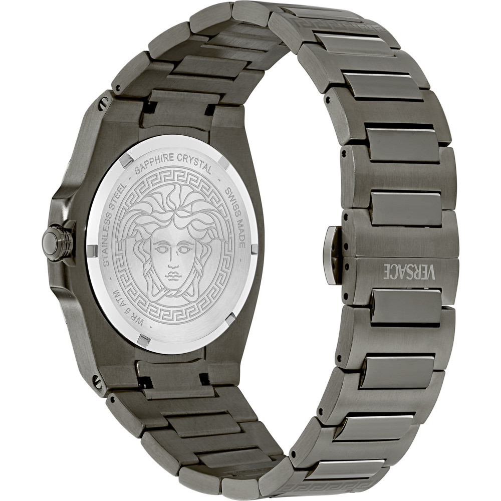 Versace TOLOMEO 40мм/мужские часы/кварцевые/серый циферблат/стальной браслет /50м/Сапфировое антибликовое стекло/Стальной корпус с покрытием Gun Швейцария VE0V00625 Гарантия: 2 года