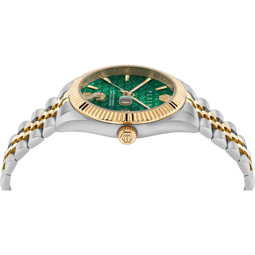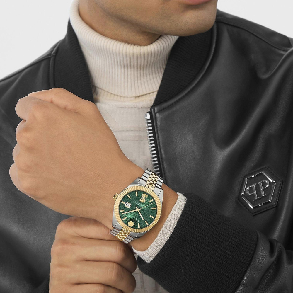 Philipp Plein DATE SUPERLATIVE GENT 41мм/мужские часы/кварцевые/зеленый циферблат с кристаллами/стальной браслет /50м/Минеральное стекло/Стальной корпус с GP Италия PWMFA0825 Гарантия: 2 года