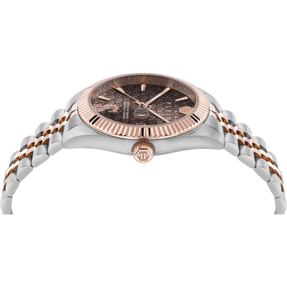 Philipp Plein DATE SUPERLATIVE GENT 41мм/мужские часы/кварцевые/коричневый циферблат с кристаллами/стальной браслет /50м/Минеральное стекло/Стальной корпус с RGP Италия PWMFA0925 Гарантия: 2 года