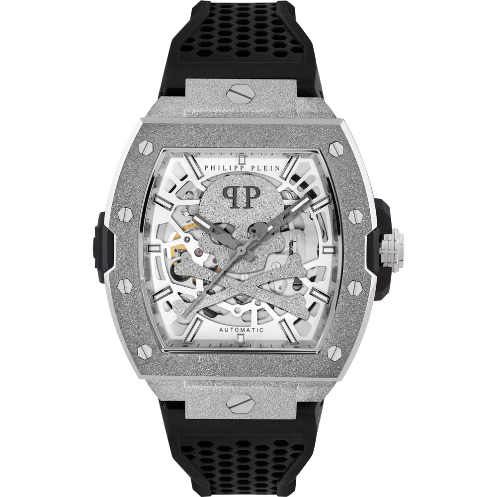 Philipp Plein THE $KELETON Frosted 44мм/мужские часы/автоматические/серебристый циферблат/черный ремешок /50м/Минеральное стекло/Стальной корпус Италия PWJFA0925 Гарантия: 2 года