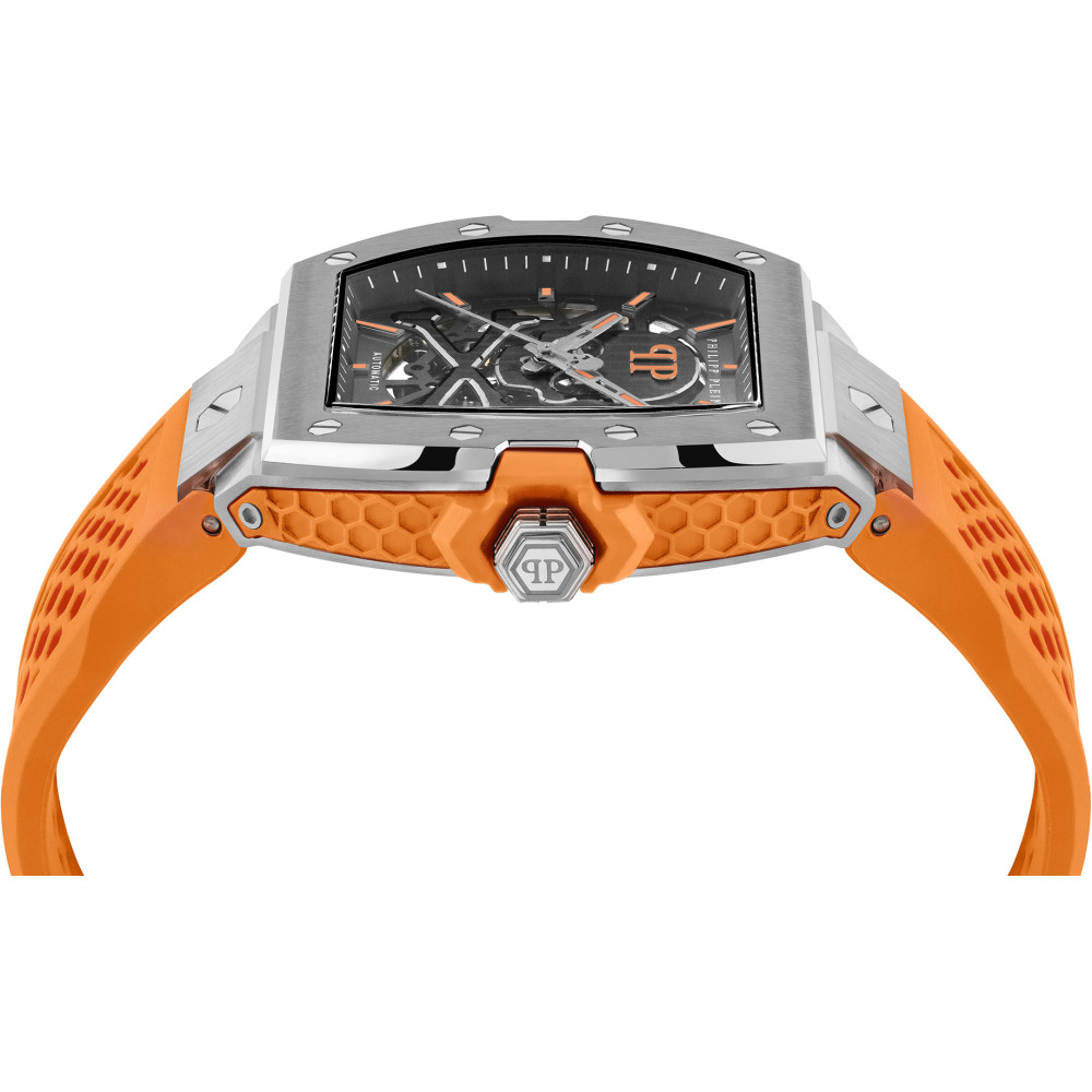 Philipp Plein THE $KELETON Limited Edition 44мм/мужские часы/автоматические/серый циферблат/оранжевый ремешок /50м/Минеральное стекло/Стальной корпус Италия PWJFA1225 Гарантия: 2 года