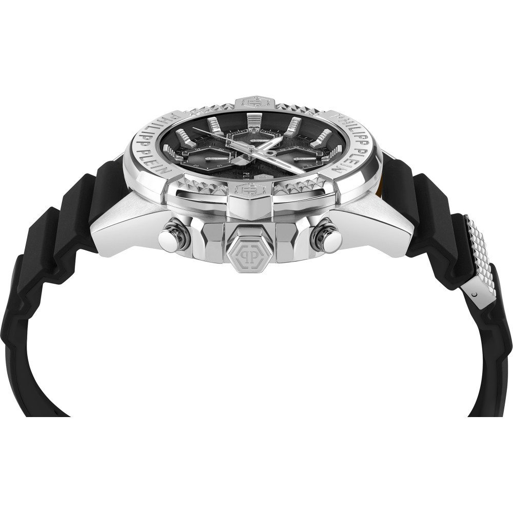 Philipp Plein THE $KULL Chrono 44мм/мужские часы/кварцевые/черный циферблат/черный ремешок /50м/Минеральное стекло/Стальной корпус Италия PWWFA0125 Гарантия: 2 года