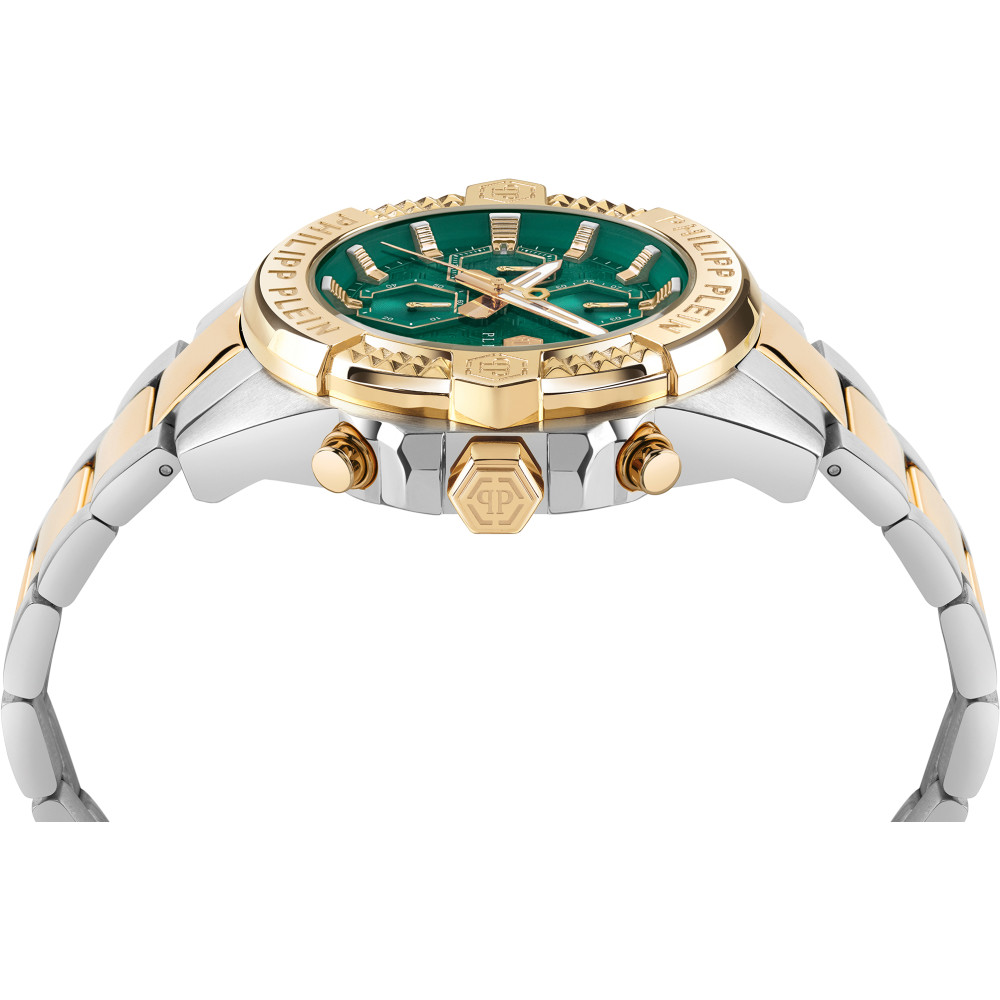 Philipp Plein THE $KULL Chrono 44мм/мужские часы/кварцевые/зеленый циферблат/стальной браслет /50м/Минеральное стекло/Стальной корпус с GP Италия PWWFA0525 Гарантия: 2 года