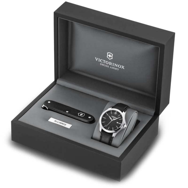 Мужские кварцевые часы Victorinox ALLIANCE со швейцарским армейским ножом Pioneer Alox в подарочном футляре. Специальное предложение от культового швейцарского бренда Victorinox Swiss Army.