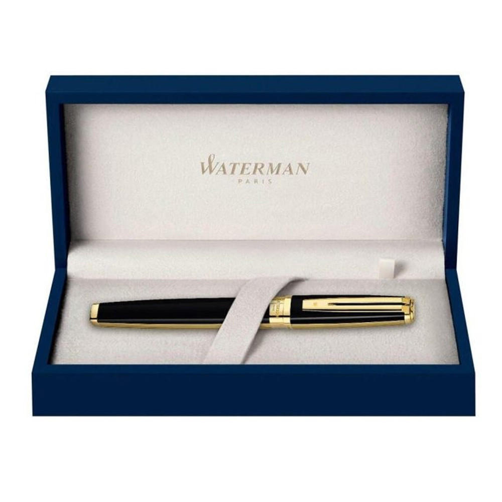 Перьевая ручка Waterman EXCEPTION в отделке Night & Day, с черным лаковым покрытием и золотой отделкой, оснащенную 18-каратным пером тонкого размера.