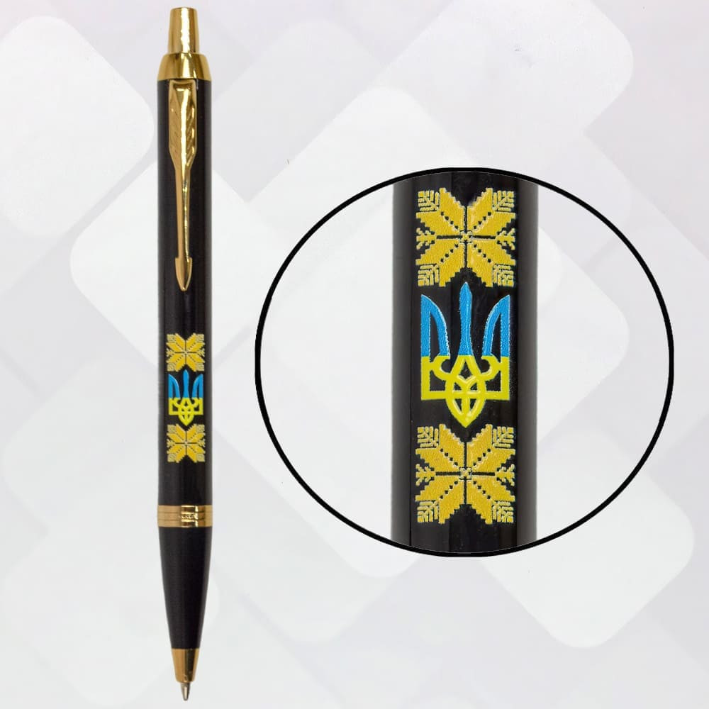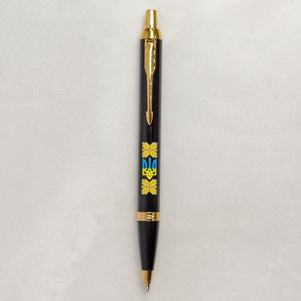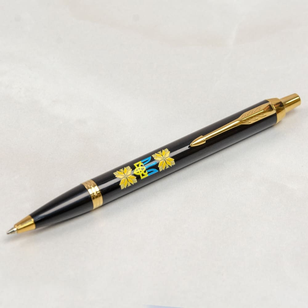 Ручка шариковая Parker IM UKRAINE Black GT BP с изображением Трезубец с желтым орнаментом (Франция) Гарантия: 2 года