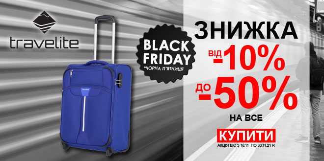 Чорна п'ятниця 2021 Знижки до -50% на ВЕСЬ TRAVELITE!