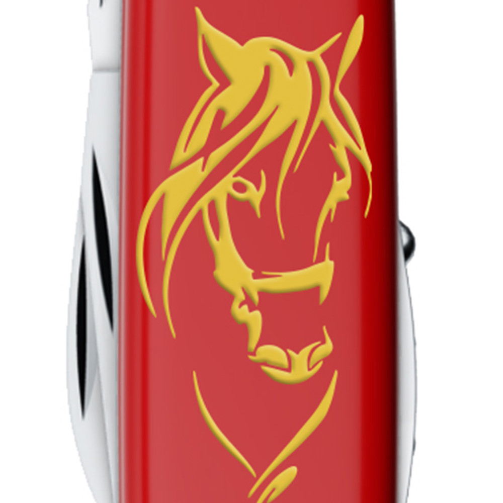 Складной нож HUNTSMAN ZODIAC 2026 - Очаровательная лошадь - из эксклюзивного выпуска, посвященного году Лошади. Многозадачный карманный нож Huntsman 91 мм на 15 функций в сочетании с персонализированным праздничным дизайном на фоне красной глянцевой накладки. Символом 2026 года согласно восточному календарю будет Лошадь, которая символизирует плодородие и силу, свободу и верность, физическую силу и мужество. Модель достойно пополнит вашу личную коллекцию ножей Victorinox, выступит в роли тематического новогоднего подарка с пожеланиями удачи, людям, рожденным в год Лошади, а также фанатам лошадей.
