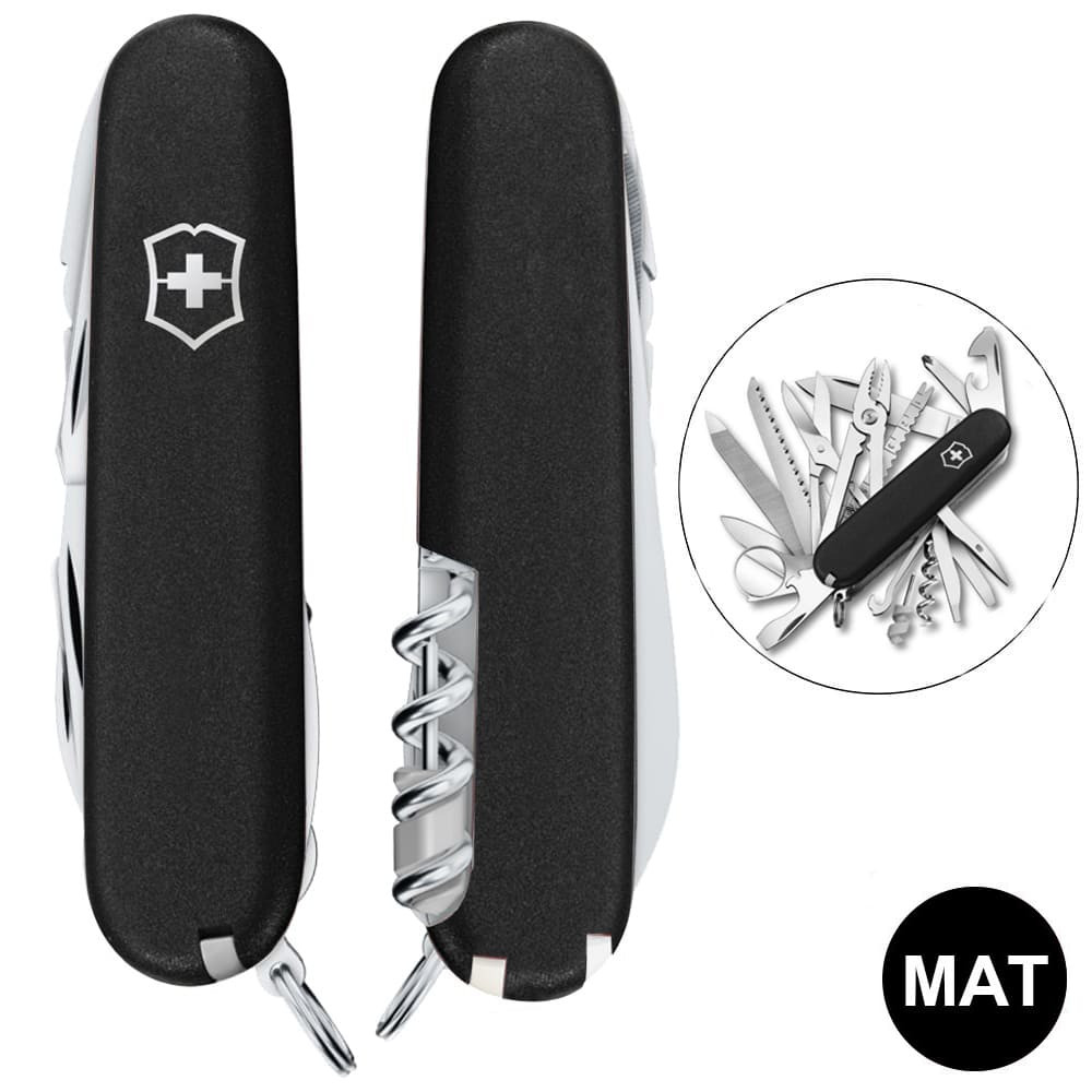 Краткое описаниеШвейцарский складной нож Victorinox SWISSCHAMP MAT 91мм/33 функции/черные матовые накладки/штопор/ножницы/плоскогубцы/пила/напильник/лупа/стамеска/рыбочистка (Швейцария) Гарантия: Пожизненная