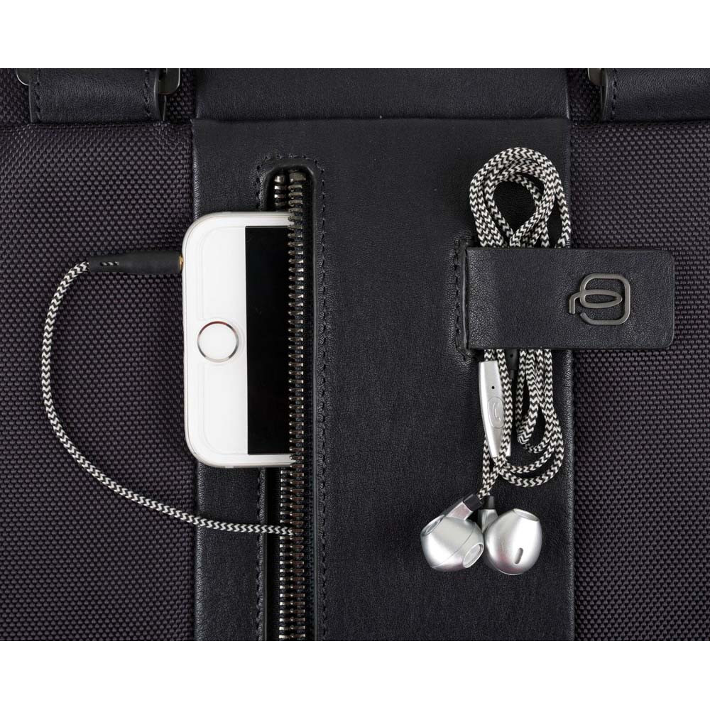 Сумка из коллекции Piquadro Brief (BR) изготовлена из переработанного текстиля и украшена кожаными деталями. Лаконичный дизайн делает ее уместной как в деловой среде, так и в повседневном использовании.
