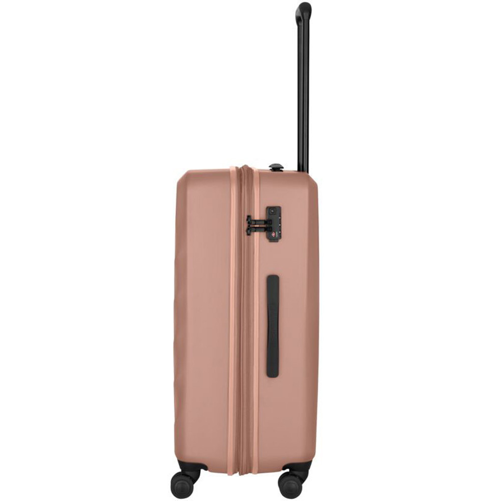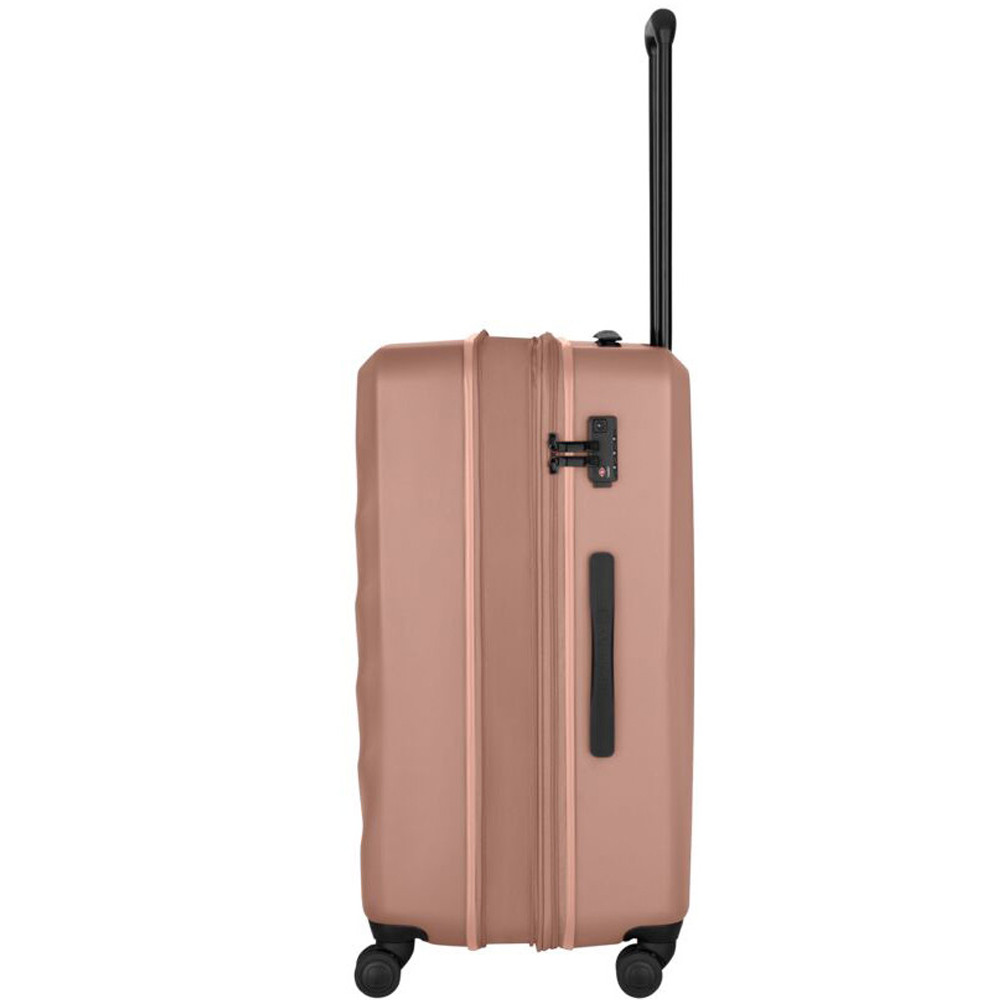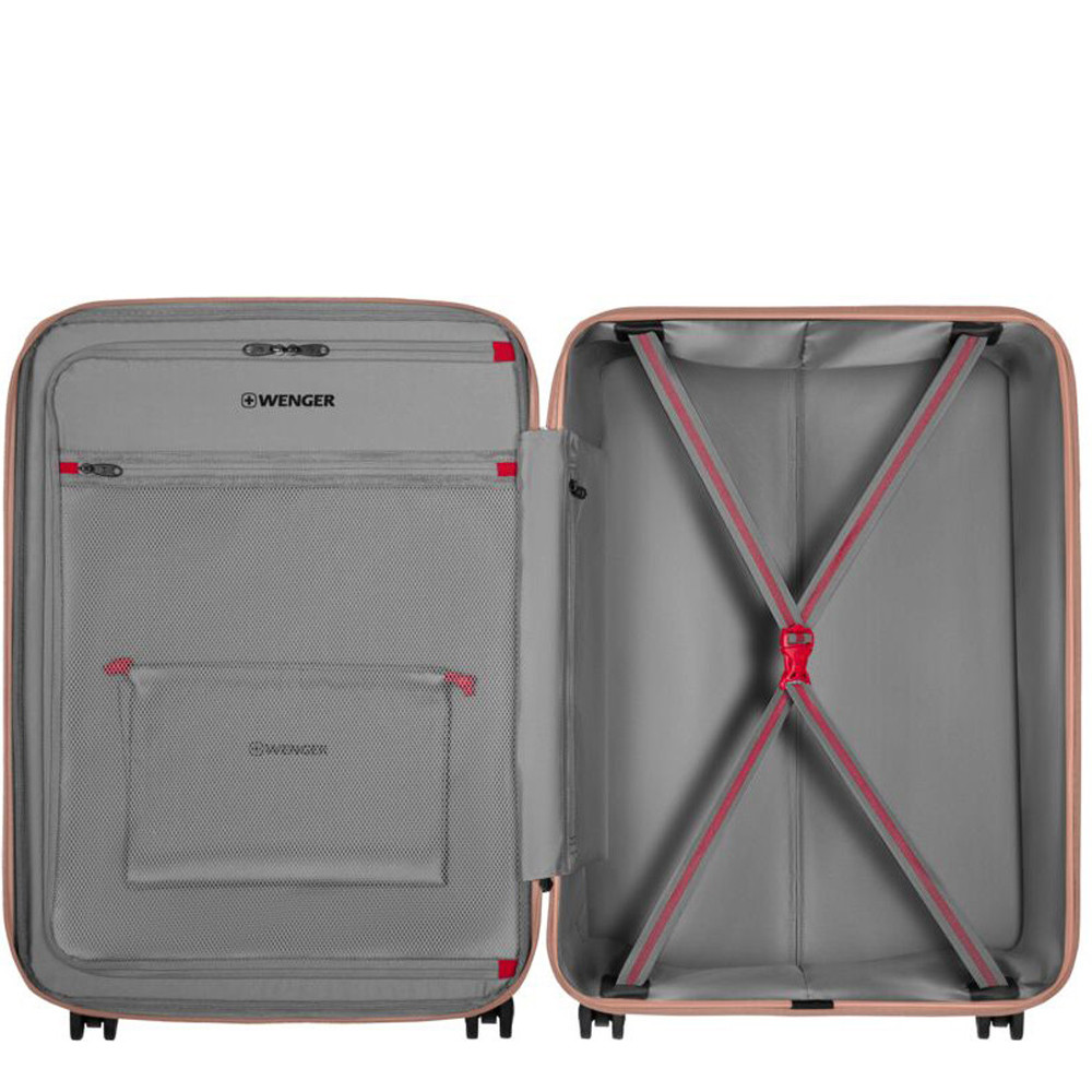 Wenger MOTION Medium Expandable (PC+ABS / 85-100 л / 69х48х29-34 см / колір - рожевий) - середня тверда валіза зі вставкою-розширювачем та вбудованим TSA замком. Поєднує елегантний швейцарський дизайн та практичність. Легка маневреність завдяки чотирьом колесам з подвійними роликами, тому з багажем легко пересуватися навіть у переповнених аеропортах або на вокзалах. Містке відділення організоване максимально просто та функціонально, щоб кожен сантиметр упаковки працював на вас. Додатковий обʼєм доступний у всіх моделях серії, що дозволяє не турбуватися, якщо речей виявиться більше, ніж планувалося.
