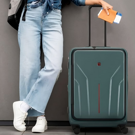 Універсальний середній розмір з доступом до речей через передні дверцята - це практична конструкція, яка дозволяє швидко та організовано запакувати речі. Не важко пакувати валізу в досить компактному просторі, просто зафіксувавши кришку валізи спеціальними стабілізаційними ременями у піднятому положенні. Функція збільшення пакувального місця у всіх розмірах серії - чудова можливість забути про хвилювання, якщо ви часто не вкладаєтеся в габарити вашого багажу.
