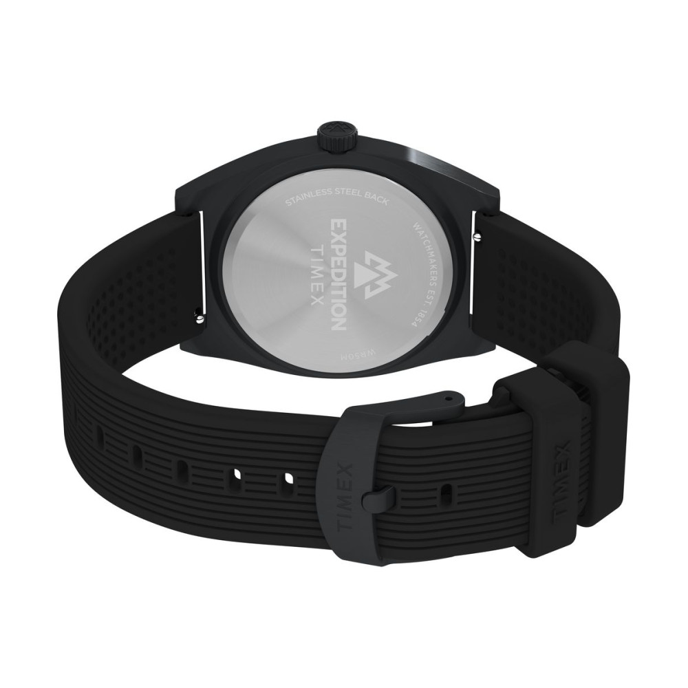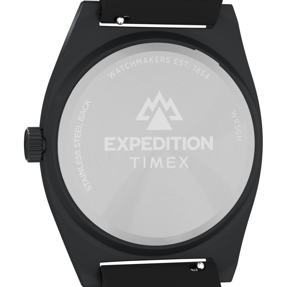 Чоловічий кварцовий годинник Timex EXPEDITION Field з чорним матовим корпусом 39 мм та чорним силіконовим ремінцем. Модель Expedition Capstone представляє новий дизайн корпусу бочкоподібної форми з матовою обробкою в колекції Expedition. Циферблат захищений плоским мінеральним склом і включає стрілки, що світяться, а також апертуру дати поряд з позначкою «3 години». Зручний силіконовий ремінець. Для зняття пружинних штифтів, що кріплять ремінець до корпусу годинника, не потрібні жодні інструменти для швидкої заміни ремінця на новий або відповідний до випадку.