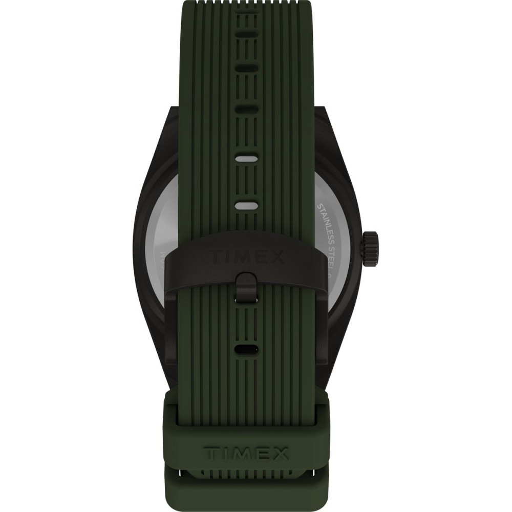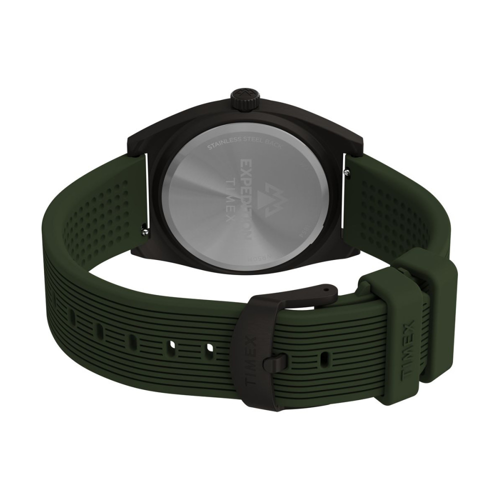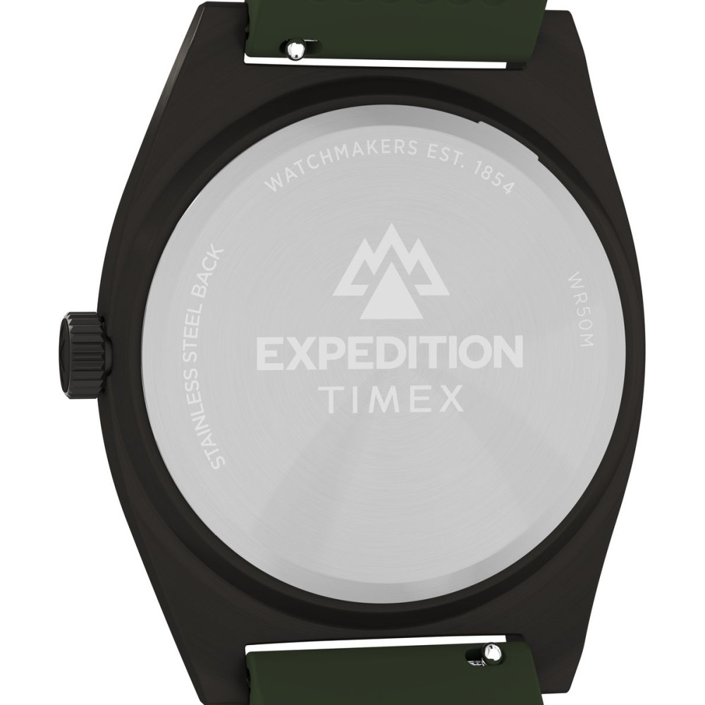 Timex EXPEDITION Field TW2Y18000 – кварцовий годинник із сірим матовим корпусом 39 мм та зеленим силіконовим ремінцем. Модель Expedition Capstone представляє новий дизайн корпусу бочкоподібної форми з матовою обробкою в колекції Expedition. Циферблат захищений плоским мінеральним склом і включає стрілки, що світяться, а також апертуру дати поряд з позначкою «3 години». Зручний силіконовий ремінець. Для зняття пружинних штифтів, що кріплять ремінець до корпусу годинника, не потрібні жодні інструменти для швидкої заміни ремінця на новий або відповідний до випадку.