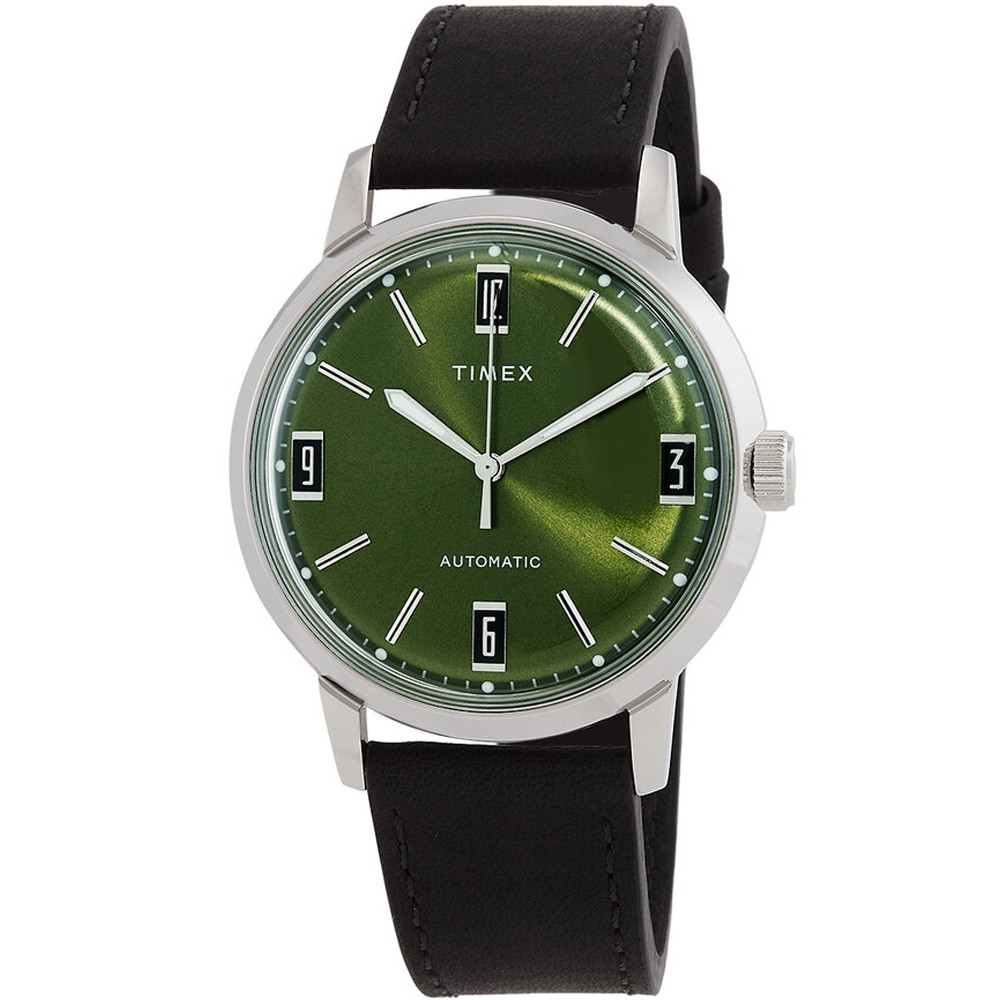 Чоловічий автоматичний годинник Timex MARLIN Automatic 40 мм із зеленим циферблатом та чорним шкіряним ремінцем. У цій версії культового Marlin® 1960-х років використовується перевірений японський автоматичний механізм із 21 каменем. Механізм працює від ваших рухів під час носіння годинника, зберігає заведення до 40 годин у стані спокою. Якщо ви перебуваєте в нерухомому стані більше 40 годин, заведіть годинник за допомогою заводної головки до тих пір, поки не відчуєте опір, встановіть час і знову надягніть годинник на зап'ясток, щоб кожен рух давав енергію. Вірний оригінальному дизайну Marlin, цей годинник оснащений культовим куполоподібним акриловим склом і накладними індексами в стилі ретро, а також міцним сталевим корпусом з демонстраційною задньою кришкою. М'який шкіряний ремінець із натуральної шкіри від компанії S.B. Foot Tanning Company.