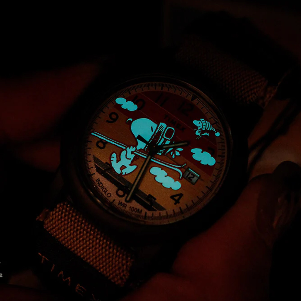 Неординарний кварцовий годинник Timex x Peanuts® Camper Ski 38 мм зі Снупі, підсвічуванням Indiglo та бежевим текстильним ремінцем на липучці. Немає нічого кращого за свіжий сніг! Завдяки спеціальному підсвічуванню, яке підсвічує Снупі при ввімкненні, ця кумедна оновлена версія годинника Camper буде викликати посмішку на вашому обличчі щоразу, коли ви дивитися на час. Ідеально підходять як для катання на лижах, так і для повсякденного носіння, він оснащений легким полімерним корпусом, стрілками, що світяться. Тканинний ремінець забезпечує спортивний стиль та швидку, зручну та надійну фіксацію завдяки застібці на липучці.