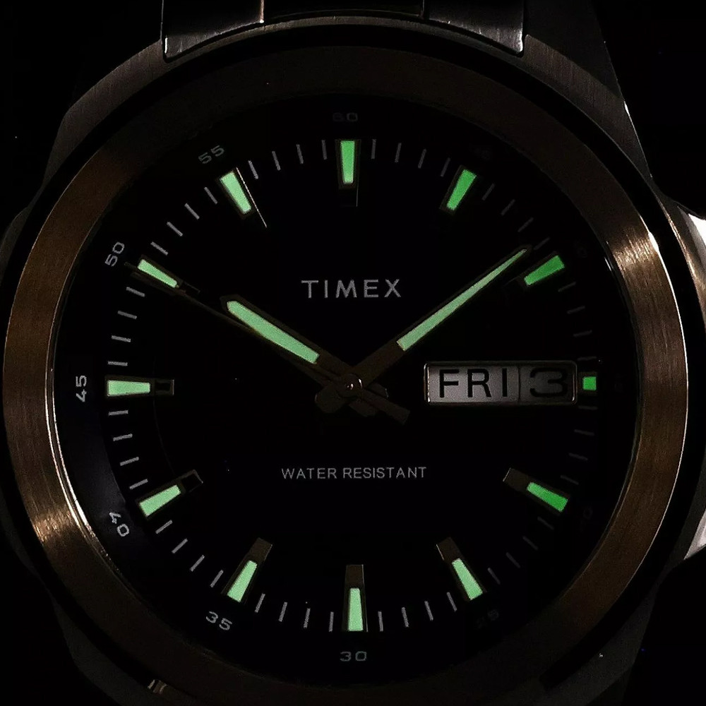 Чоловічий кварцовий годинник Timex ESSEX AVENUE Day Date 45 мм з чорним циферблатом і сталевим браслетом. Модель Essex отримала сміливе оновлення. Тепер із збільшеним 45-міліметровим корпусом та новим круглим безелем, виготовленими з матово-полірованої переробленої сталі, вона надає свіжого вигляду елегантній класиці. Циферблат має унікальну круглу вставку та віконце дня і дати, а Timex покращили його, додавши люмінесцентні стрілки та мітки для кращої видимості у нічний час. Браслет із матово-полірованої сталі в єдиному стилі завершує образ, надаючи цьому годиннику елегантного, повністю сталевого вигляду.