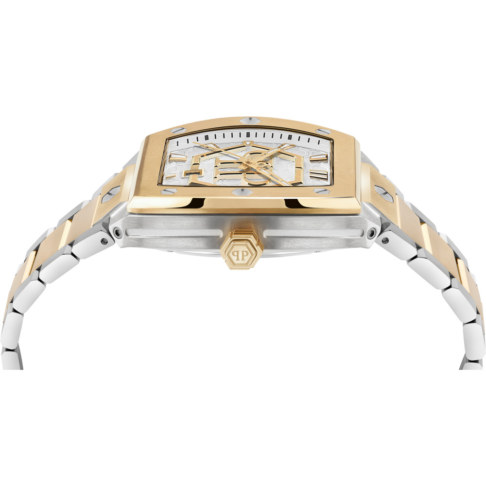 Philipp Plein HEXAGON PHANTOM 44мм/чоловічий годинник/кварцовий/сріблястий циферблат/сталевий браслет /50м/Мінеральне скло/Сталевий корпус з GP Італія PWPUA0925 Гарантія: 2 роки