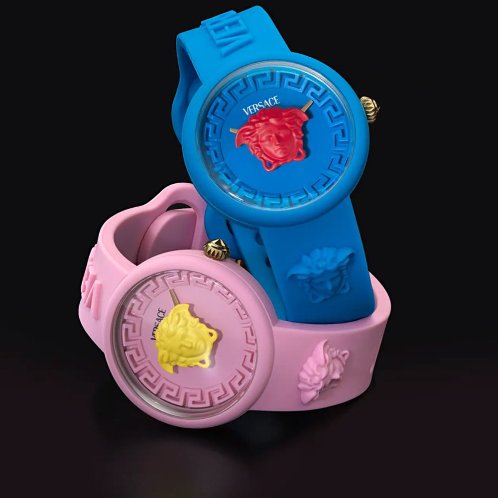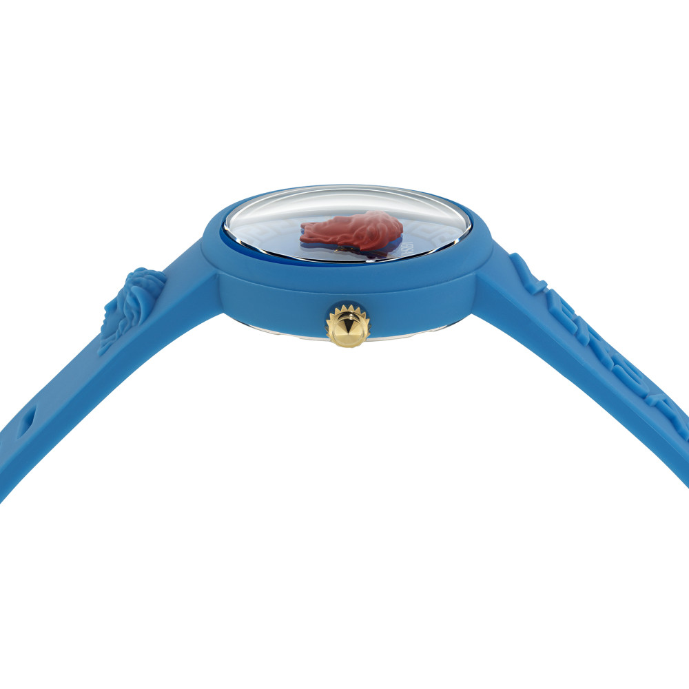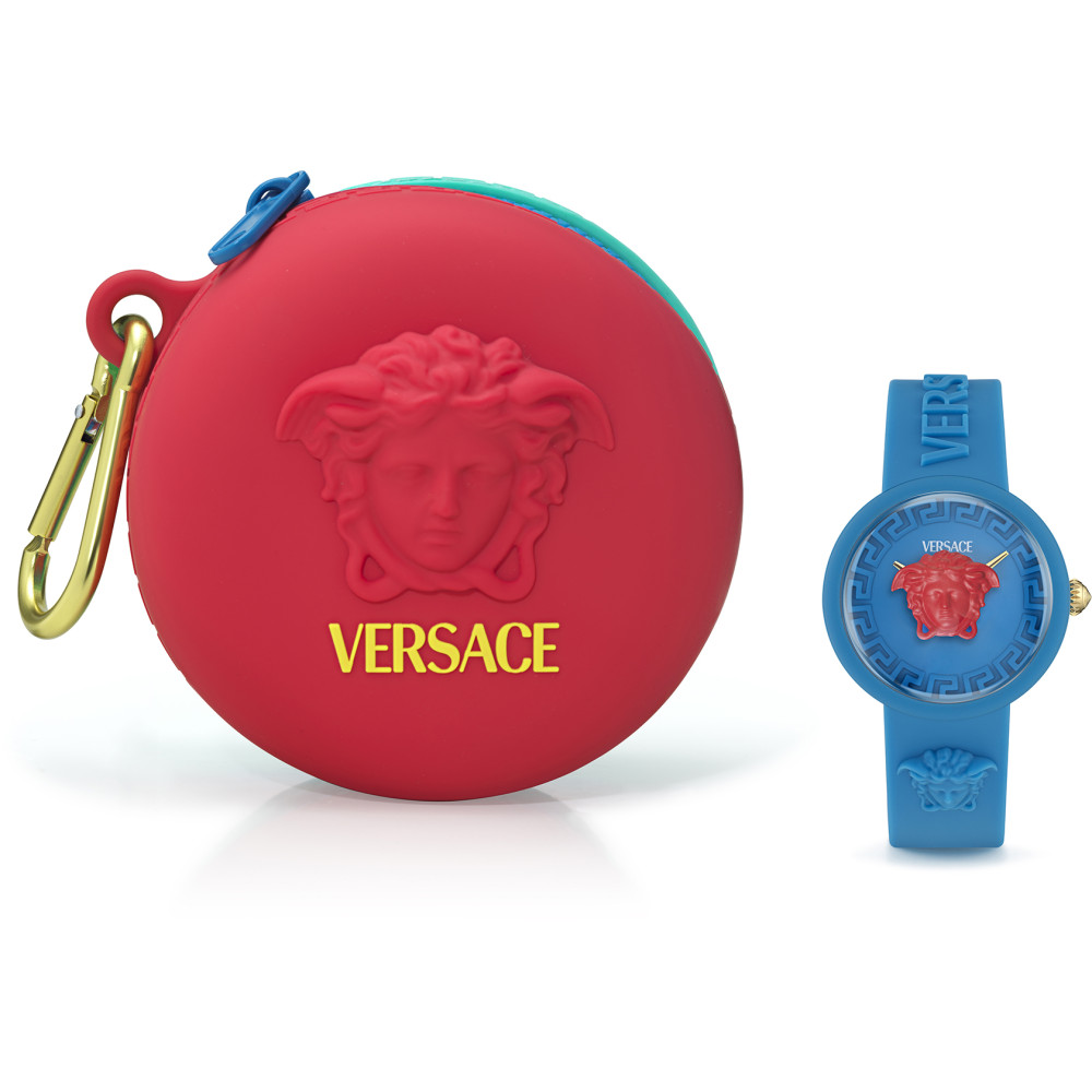 Синій силіконовий годинник для дітей Versace VE9200125 MEDUSA POP KIDS 32 мм. Яскраві, соковиті кольори та контрастна ширяюча Медуза надають цьому годиннику культового стилю. Це більше, ніж просто годинник - це модний аксесуар, який ідеально підходить для тонких зап'ястків. Годинник оснащений зручним і міцним силіконовим ремінцем та ідеально підходить для повсякденних пригод. У комплекті є спеціальний силіконовий чохол, що ідеально підходить для стильного зберігання або як подарунок.