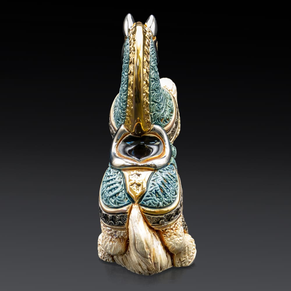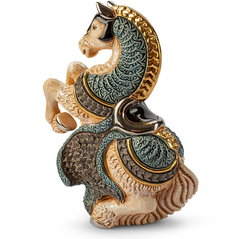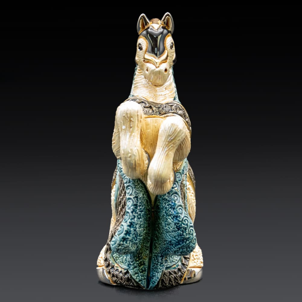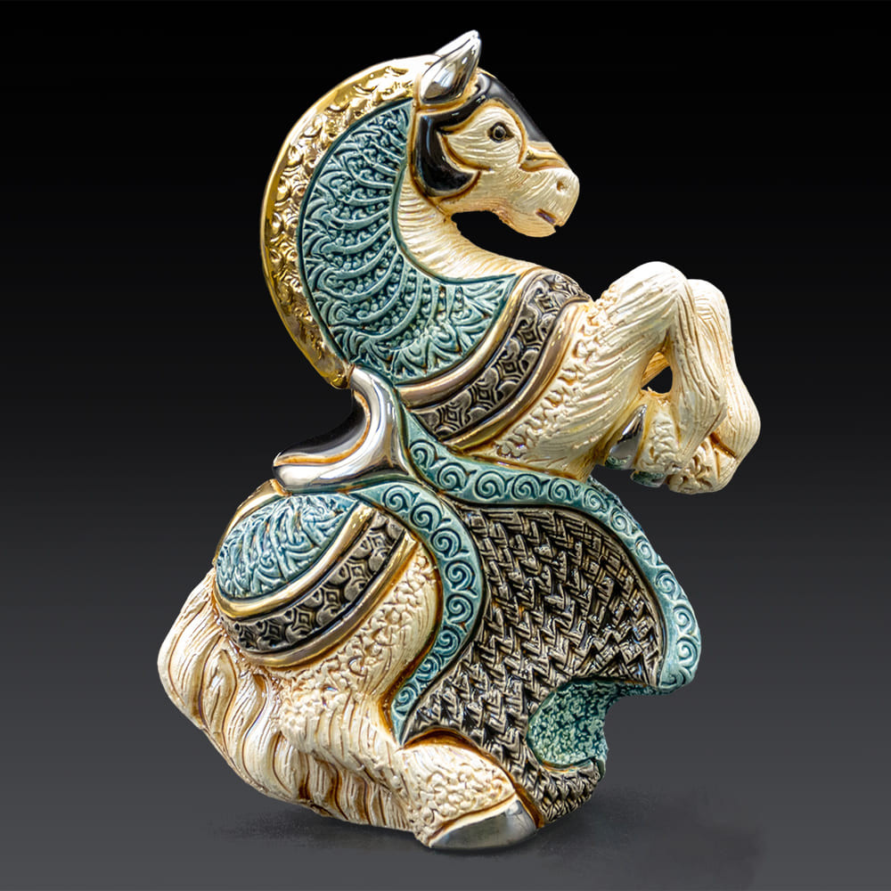 Керамічна статуетка "Білий лицарський кінь" від De Rosa - чудовий варіант для колекціонування, подарунка та декорування інтер'єру. Ця скульптура є величним лицарським конем – символ сили, мужності і шляхетності. Вдягнена у вишукані обладунки та готова до перемоги, ця статуетка втілює міць та елегантність середньовічних турнірів. Вона стане яскравим доповненням до будь-якої колекції та оживить дух лицарства.