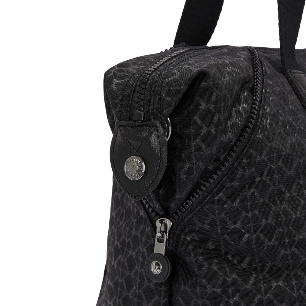 Сумка для роботи, дозвілля та поїздок - Kipling ART у чорному принтованому дизайні з колекції Kipling Basic. Модель з кутами-трансформерами - це відразу два силуети вашої улюбленої сумки Art. Знявши ремінь і застібнувши блискавки на кутах, виходить модель чарівної та нетривіальної форми. Дві середні ручки та довгий ремінь пропонують варіативність у носінні (у руках, на згині руки або на плечі). Сумка Kipling легка та містка, а весела мавпочка – чудовий компаньйон для щоденних пригод!