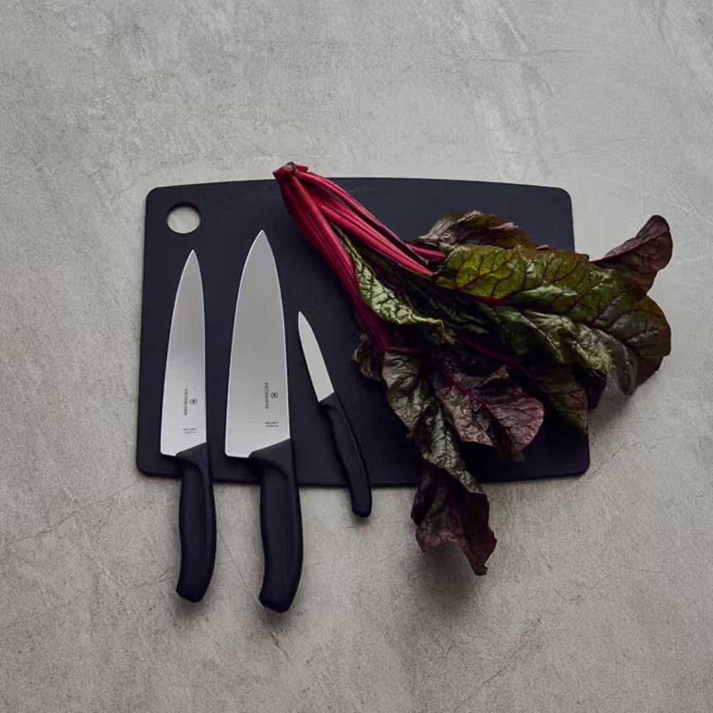 Короткий описVictorinox SWISS CLASSIC Набір кухонний Kitchen Set 3 ножа з чорними ручками (100-08, 200-19, 201-20) (у коробці) Швейцарія 6.7133.3G Гарантія: довічна