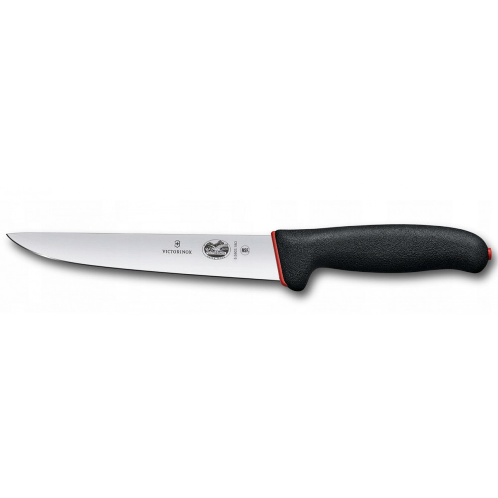 Короткий описVictorinox DUAL GRIP Ніж для м'яса універсальний Sticking з лезом 18 см / кінчик вгору / гладке / з чорною ручкою (CC) 505-18 Швейцарія 5.5503.18D Гарантія: довічна