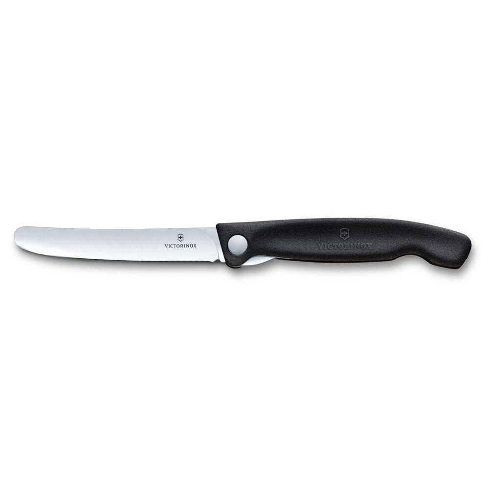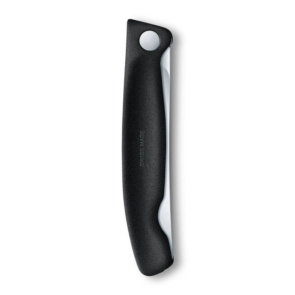 Ніж для пікніка Swiss Classic зі складаним гладким лезом 11 см та чорною ручкою. Ніж відрізняється складаною конструкцією леза (у відкритому вигляді лезо фіксується для безпечного використання). Стильне та функціональне доповнення як до кухонної атрибутики, так і як ножа для походів та пікніків. Компактний та практичний ніж для чищення та нарізання фруктів та овочів. Зручно використовувати на роботі як столове приладдя, яке завжди комфортно знаходиться під рукою.