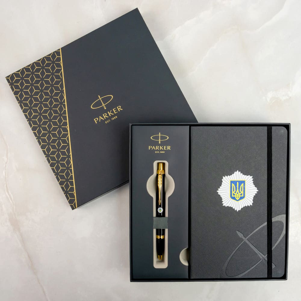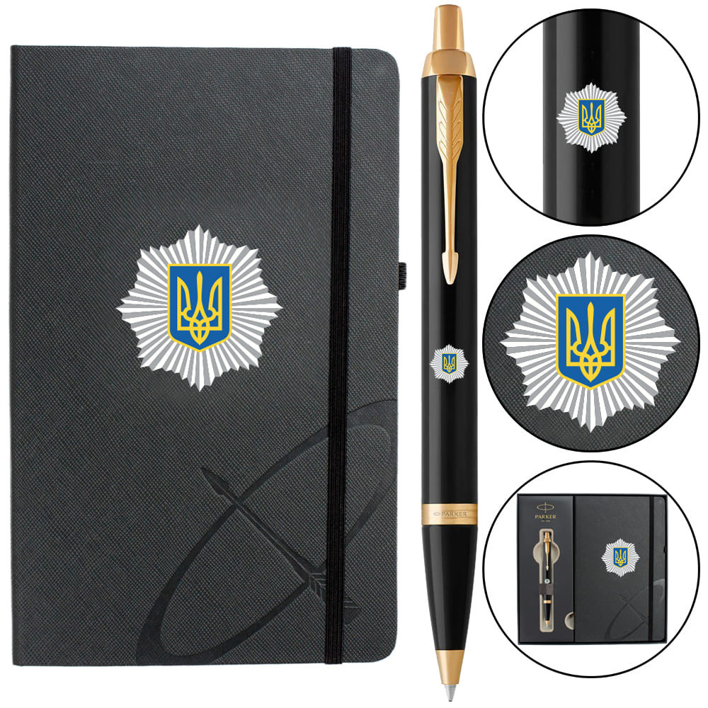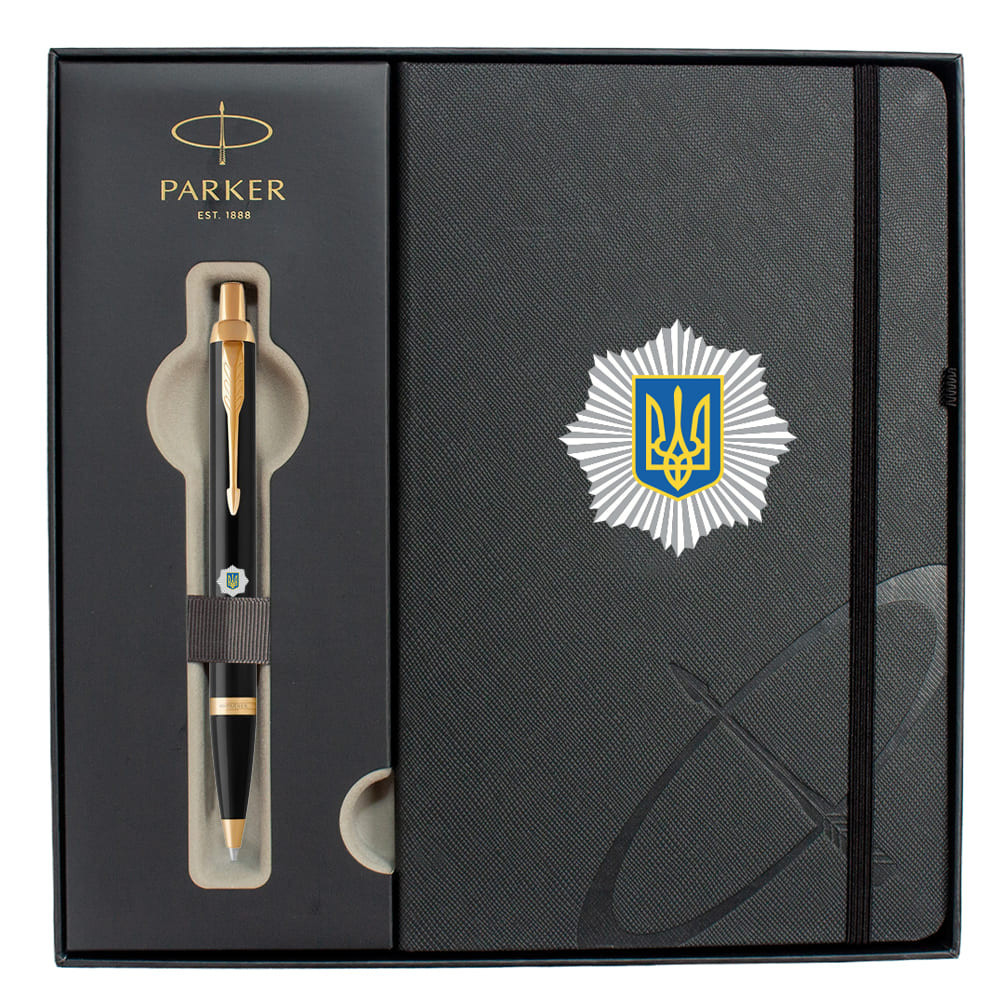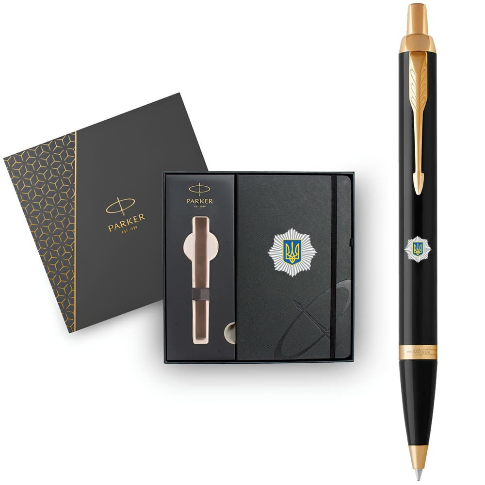 Ексклюзивний набір: ручка кулькова IM SPECIAL Black GT BP із зображенням Емблема МВС + блокнот Parker + подарункова упаковка GIFT24 (Франція) Гарантія: 2 роки