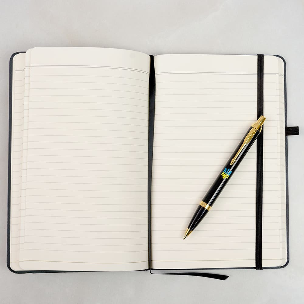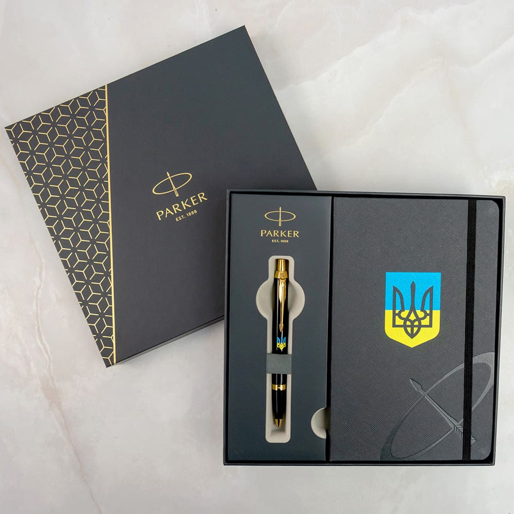 Ексклюзивний набір: ручка кулькова IM UKRAINE Black GT BP із зображенням Тризуб синьо-жовтий + блокнот Parker + подарункова упаковка GIFT24 (Франція) Гарантія: 2 роки