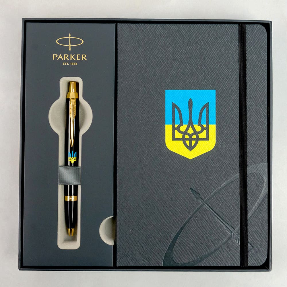Подарунковий набір Parker: кулькова ручка IM UKRAINE Black GT та записник, прикрашені кольоровим друком Герба України. Спеціальна пропозиція з українською символікою продемонструє вашу гордість бути українцем та стане чудовим подарунком на національні та державні свята. Серія IM пропонує ручки з елегантним силуетом та бездоганним професіоналізмом, дизайн та розмір яких ідеально підходить для чоловіків та жінок. Ручка Parker IM – ідеальне співвідношення практичності та стилю.