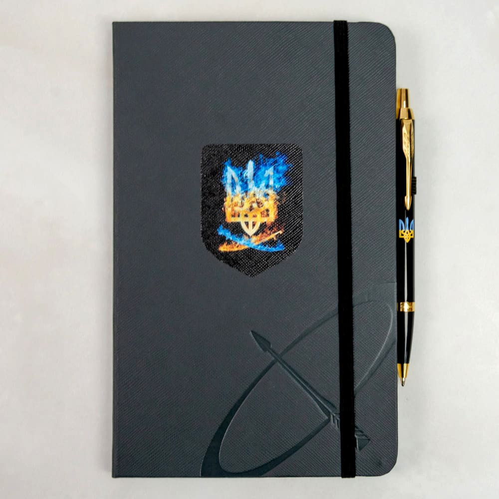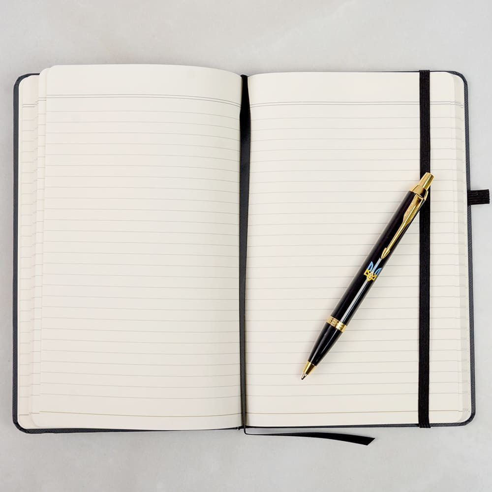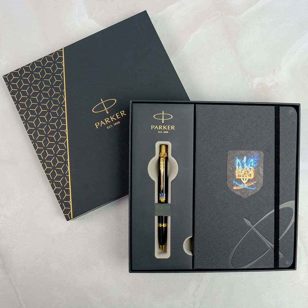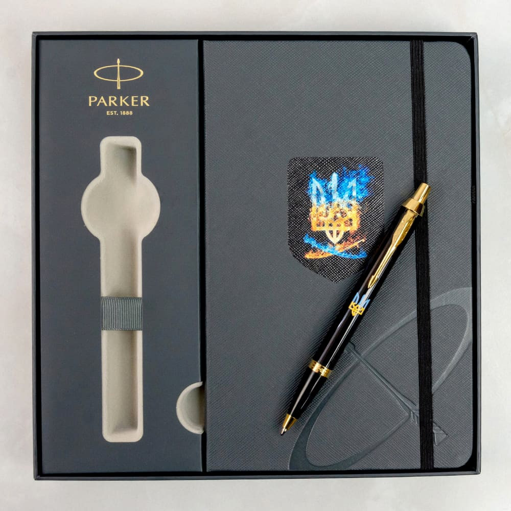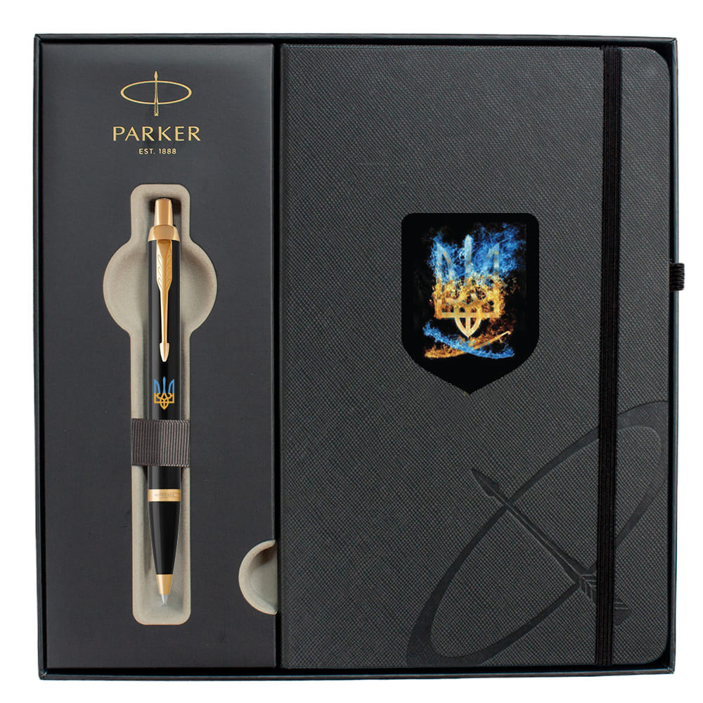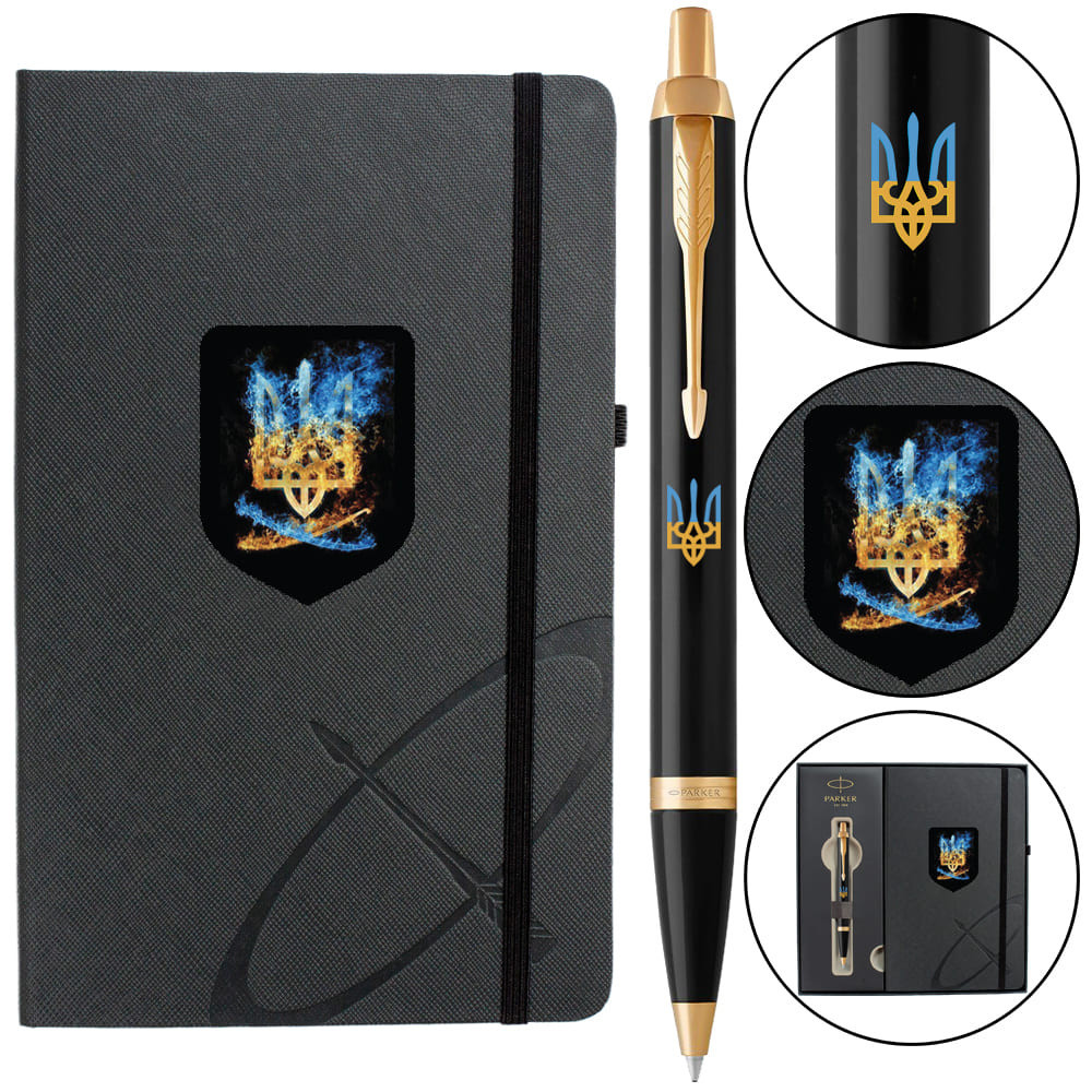 Ексклюзивний набір: ручка кулькова IM UKRAINE Black GT BP із зображенням Палаючий Тризуб + блокнот Parker + подарункова упаковка GIFT24 (Франція) Гарантія: 2 роки