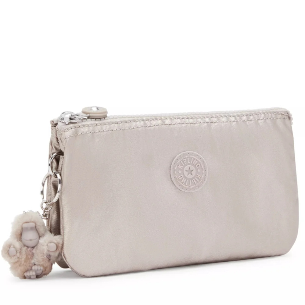 Великий багатофункціональний гаманець-косметичка CREATIVITY L у дизайні з металевим блиском та фірмовою мавпочкою Kipling. Модель Creativity L поєднує легкість, міцність та стиль, тому стане універсальним аксесуаром: гаманцем, косметичкою, органайзером чи навіть компактним клатчем на кожен день. Як саме використовувати – вирішуєте ви. Три внутрішні кишені допоможуть впорядкувати ключі, гроші, косметику та інші речі першої необхідності. А брелок-мавпочка Kipling додасть настрою та стане вашим веселим супутником у щоденних пригодах.