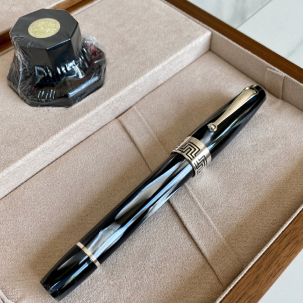 Перо із 18-каратного білого золота. Система подачі чорнила – поршнева, що гарантує надійність та комфорт у використанні. У колекцію входять як пера, так і ролери. Кожен інструмент постачається в комплекті з елегантним дерев'яним футляром та чорнильницею, що підкреслює статус та винятковість виробу.