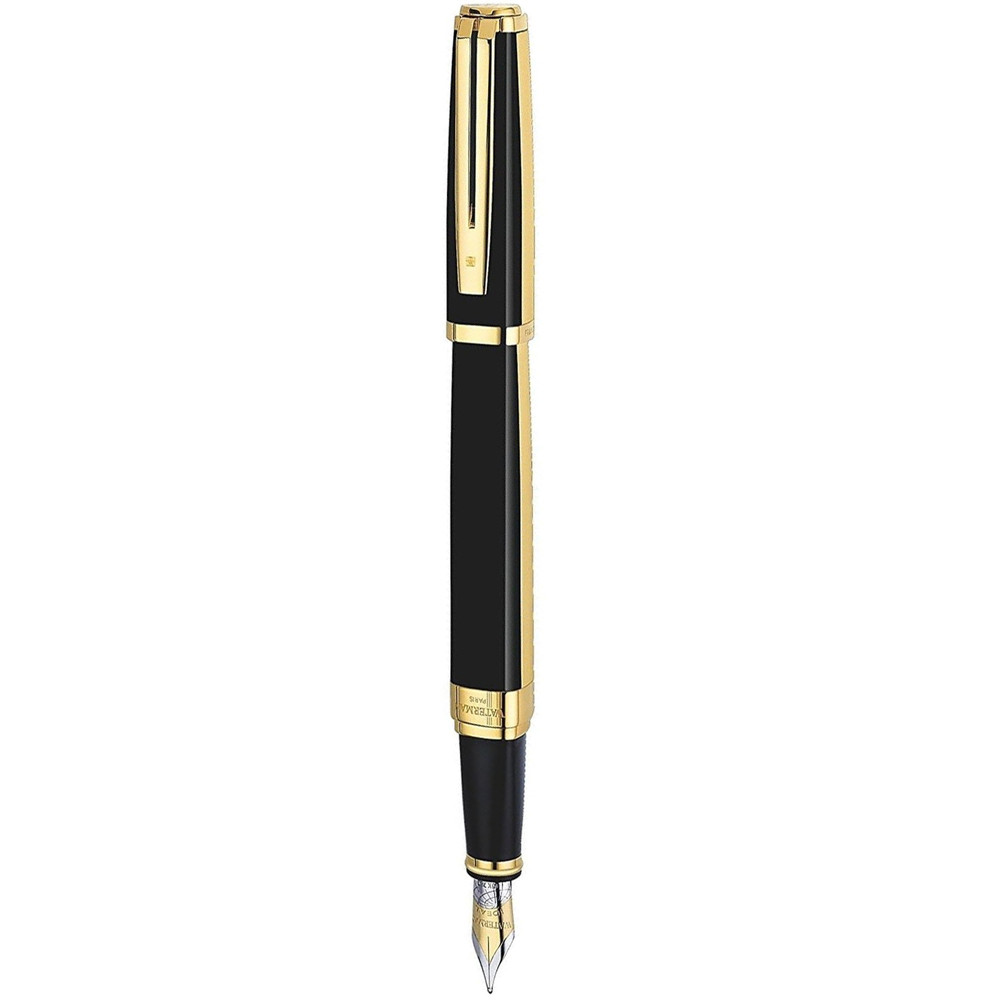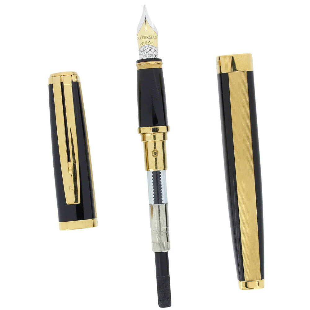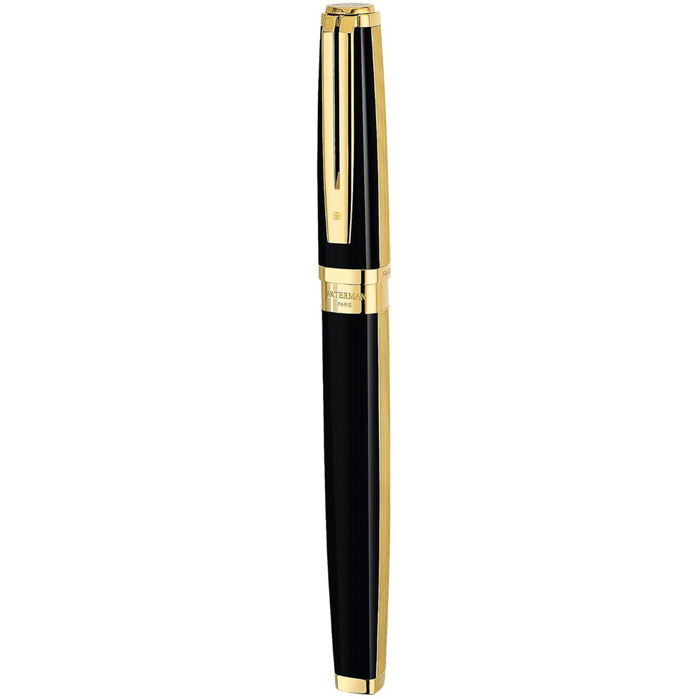 Перова ручка Waterman EXCEPTION у дизайні Night & Day, з чорним лаковим покриттям та золотим оздобленням, оснащена 18-каратним пером тонкого розміру.