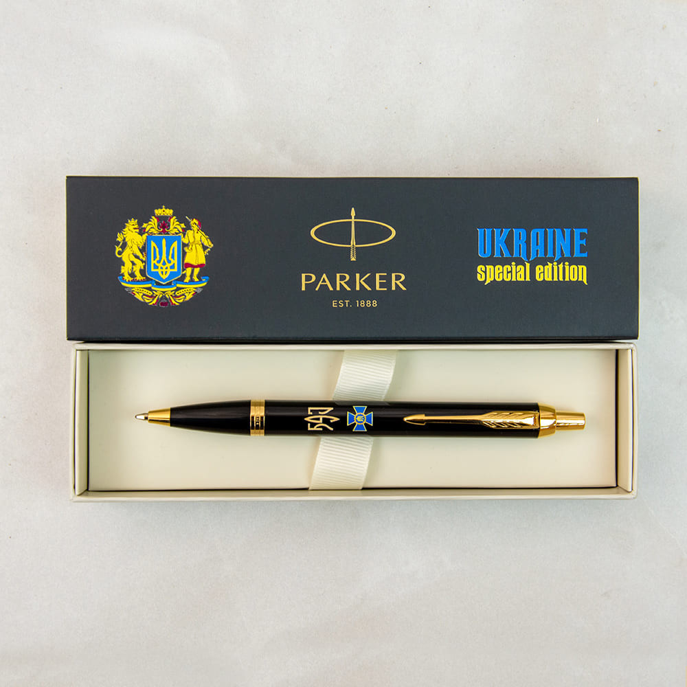 Кулькова ручка IM SPECIAL Black GT з Емблемою Служби безпеки України та абревіатурою СБУ, стилізованою під Тризуб. Спеціальна пропозиція для цікавого подарунка службовцям СБУ. Серія IM пропонує ручки з елегантним силуетом та бездоганним професіоналізмом, дизайн та розмір яких ідеально підходить для чоловіків та жінок. Ручка Parker IM – ідеальне співвідношення практичності та стилю. А подарункова коробка до нового ексклюзивного випуску з геральдичними знаками та написом Ukraine Special Edition додасть урочистості та унікальності моменту.