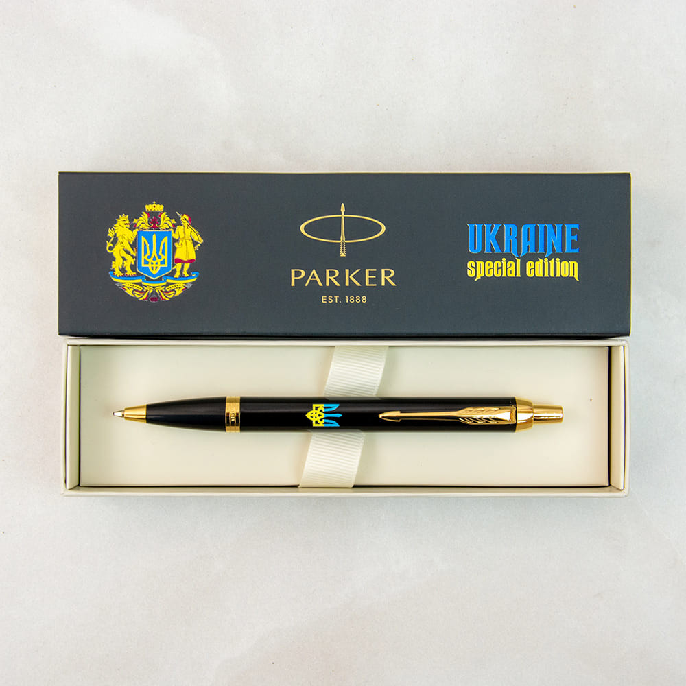 Кулькова ручка Parker IM UKRAINE Black GT з Тризубом у кольорах Державного Прапора України. Спеціальний випуск з українською символікою продемонструє вашу гордість бути українцем та стане чудовим подарунком на національні та державні свята. Серія IM пропонує повсякденні ручки з елегантним силуетом та позачасовим професіоналізмом, дизайн та розмір яких ідеально підходить для чоловіків та жінок. А подарункова коробка до нового ексклюзивного випуску з геральдичними знаками та написом Ukraine Special Edition додасть урочистості та унікальності моменту.