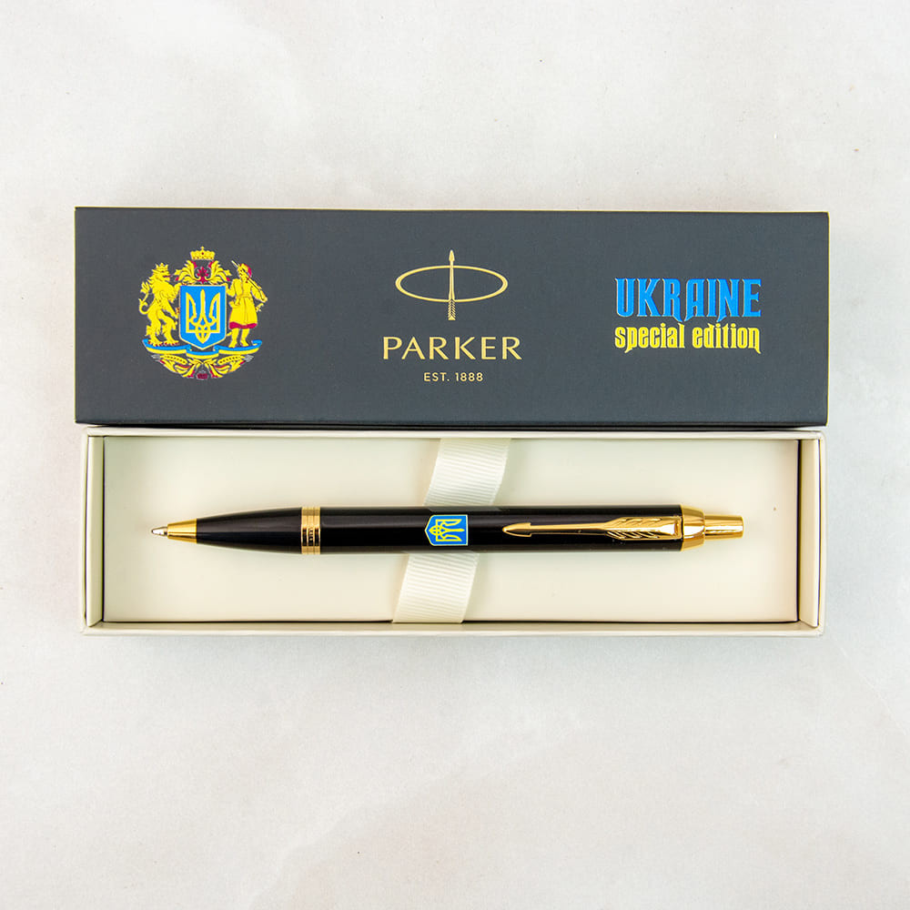 Кулькова ручка Parker IM UKRAINE Black GT з Гербом України в кольорах Державного Прапора. Спеціальний випуск з українською символікою продемонструє вашу гордість бути українцем та стане чудовим подарунком на національні та державні свята. Серія IM пропонує повсякденні ручки з елегантним силуетом та позачасовим професіоналізмом, дизайн та розмір яких ідеально підходить для чоловіків та жінок. А подарункова коробка до нового ексклюзивного випуску з геральдичними знаками та написом Ukraine Special Edition додасть урочистості та унікальності моменту.