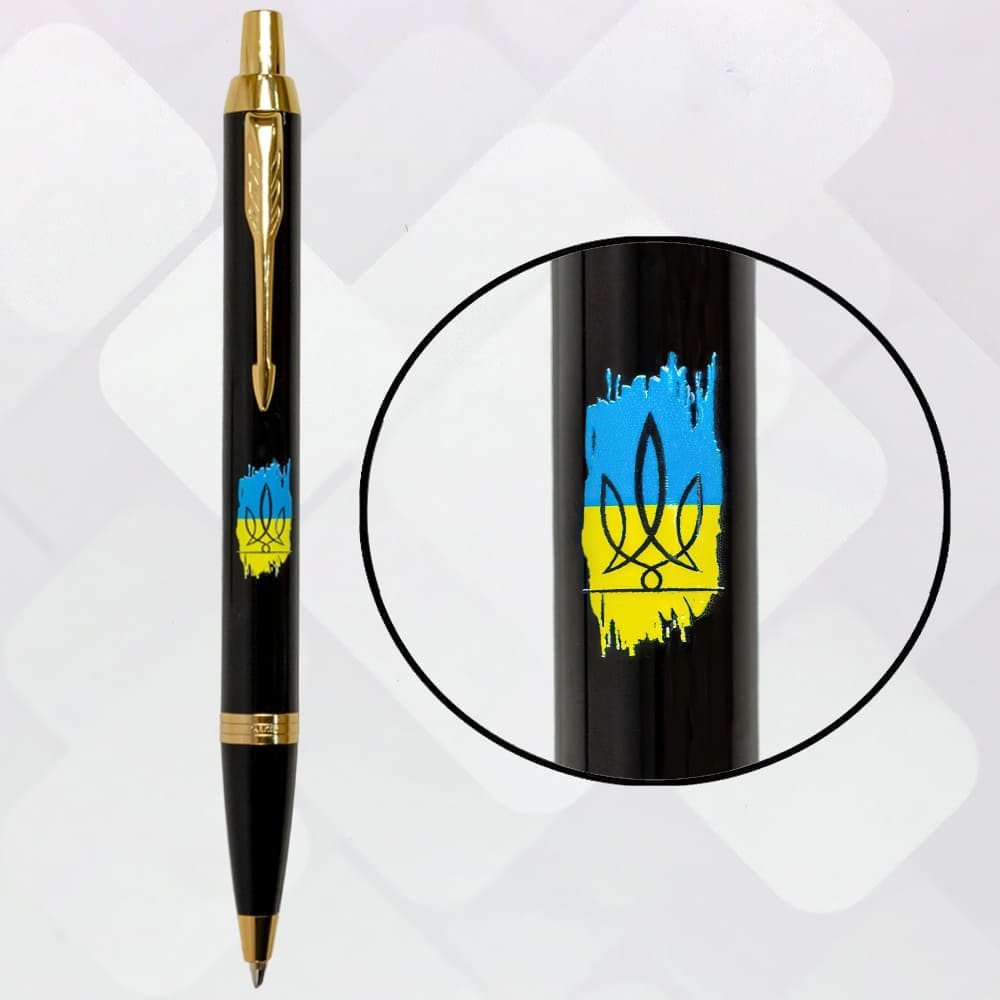 Ручка кулькова Parker IM UKRAINE Black GT BP із зображенням Тризуб фігурний на фоні прапора (Франція) Гарантія: 2 роки