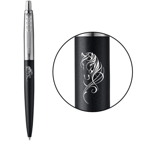 Короткий описРучка кулькова Parker JOTTER ZODIAC Bond Street Black CT BP з лазерним гравіюванням Червоний кінь Гарантія: 2 роки